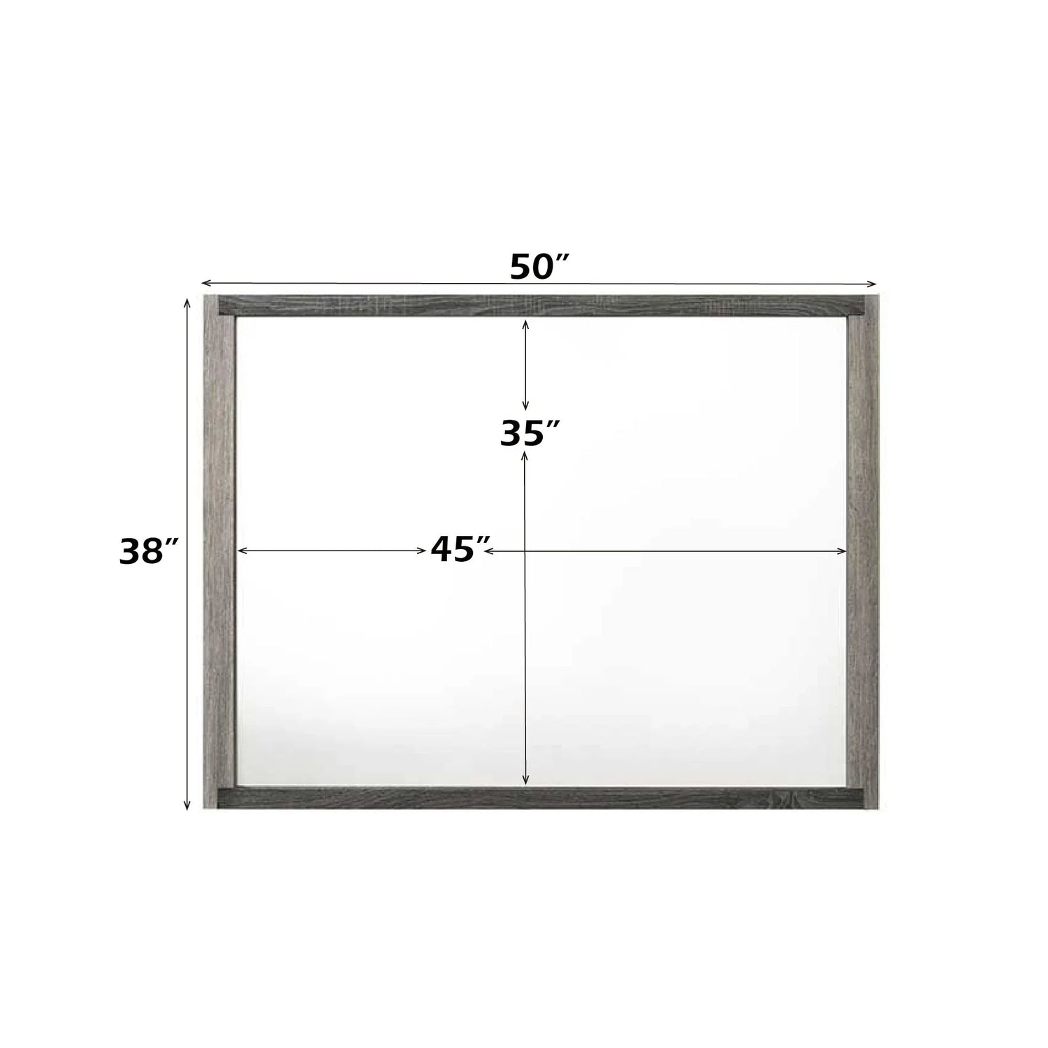 - Dimensions: The mirror's inner dimensions are 45 inches in length and 35 inches in height, while the overall assembled dimensions are 50 inches in width, 38 inches in height, and 1 inch in length.