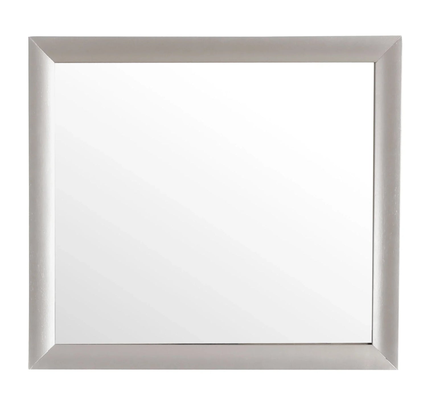 Everyday use is effortless: the mirror is designed to mount to a matching dresser for a cohesive bedroom set-up, or it can be wall-mounted by a qualified installer. The frame shown has crisp, mitered corners and a subtle metallic sheen that brightens a room while staying neutral enough to pair with modern, transitional, or coastal palettes. High‑quality, low‑distortion glass ensures an accurate reflection and lasting clarity.