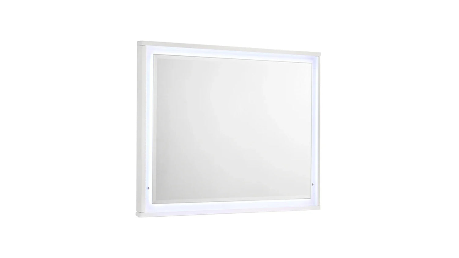 Pair with soft-textured rugs and layered bedding in warm neutrals to soften the set’s graphic lines. Add matte metal or muted wood accents to introduce contrast without competing with the furniture’s white gloss. The platform bed works well with low-profile bedside lighting and a medium-to-large area rug to anchor the layout in rooms sized for a queen bed.