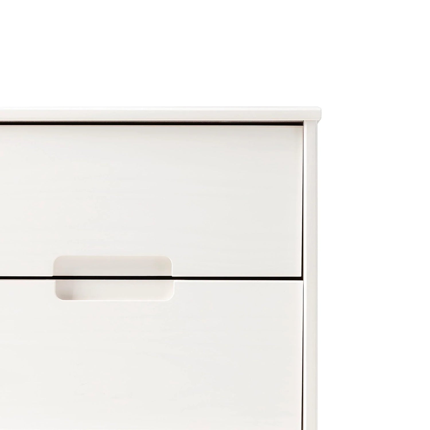 Built from solid pine with a stained finish, the nightstand feels both sturdy and approachable for daily use. Two smooth‑front drawers hide clutter while the recessed, cutout pulls maintain the streamlined silhouette; the warm, golden‑brown tone and subtle grain make it easy to pair with both mid‑century and transitional decor. Ships ready‑to‑assemble and designed for straightforward setup, it’s an economical way to introduce genuine wood character into a compact space.