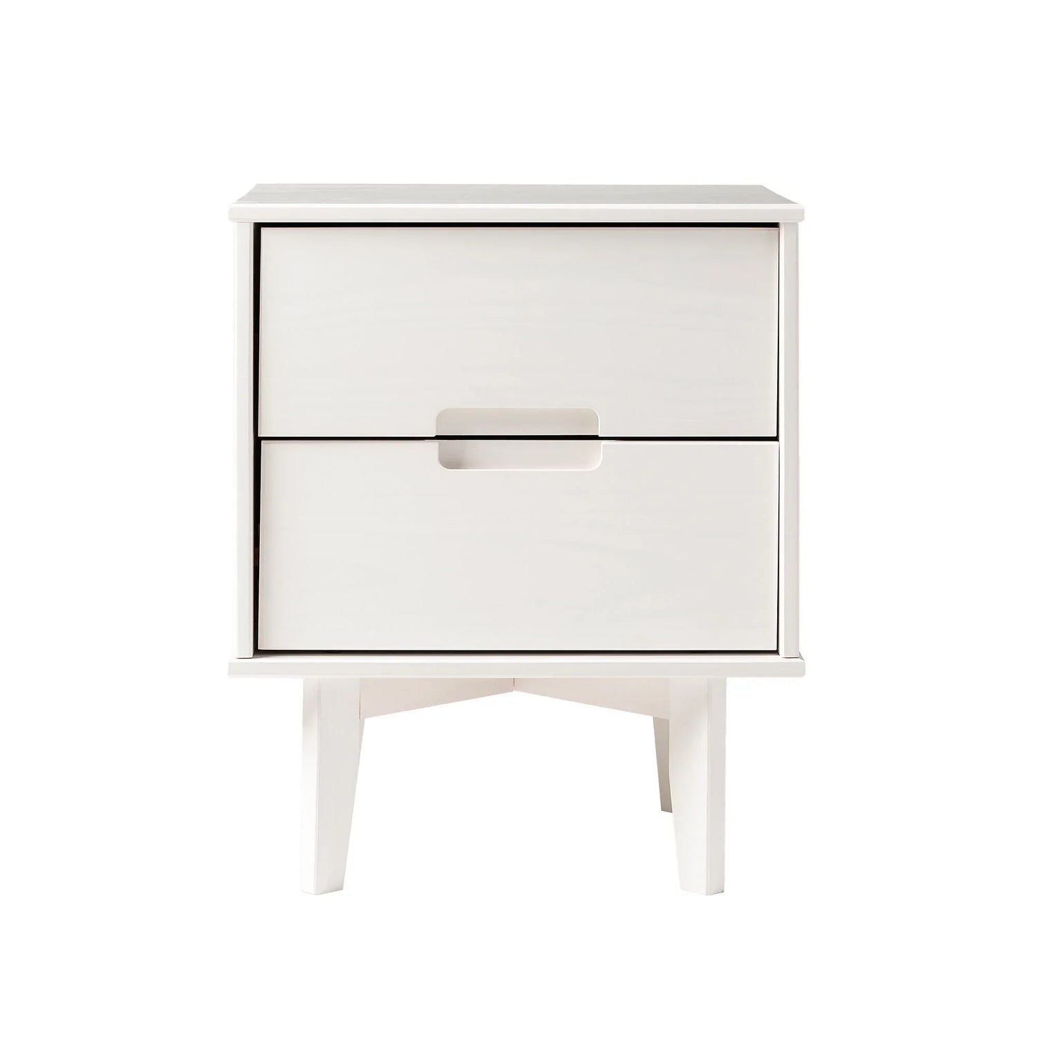 Mid-Century Modern 2 Drawer Solid Wood Nighstand With Cutout Handles