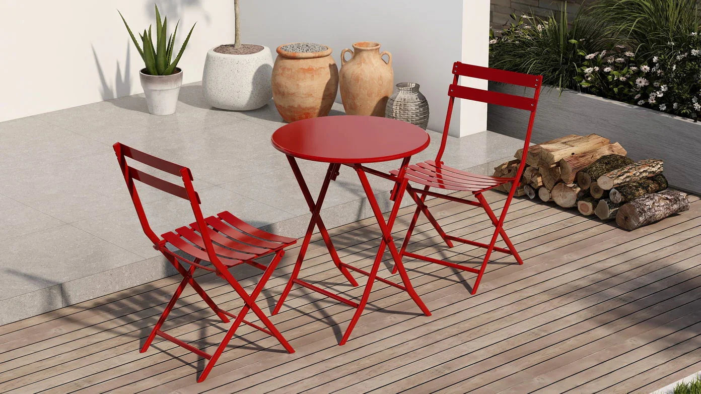 3 Piece Patio Bistro Set Of Foldable Round Table And Chairs - Red
