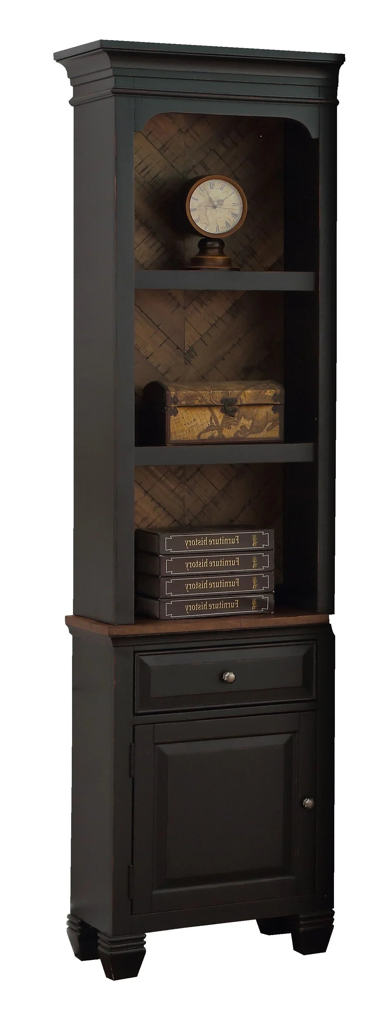 Pair the Brighton Pier with a low media console or matching shelving to create a balanced media wall. The slim 14" (35.6 cm) depth keeps it suitable for narrower rooms or hallways; allow safe doorway clearance by measuring your opening against the unit height of 85.0" (215.9 cm) before delivery. The heirloom black body and warm top finish work well with leather seating, woven textures and warm metal accents.