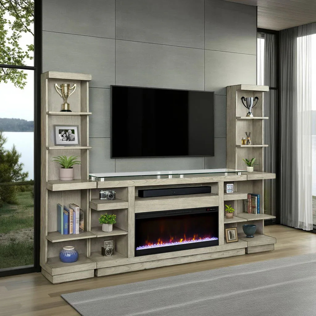 - Integrated LED lighting: Built-in illumination adds depth to displays and improves visibility for media components or decor.