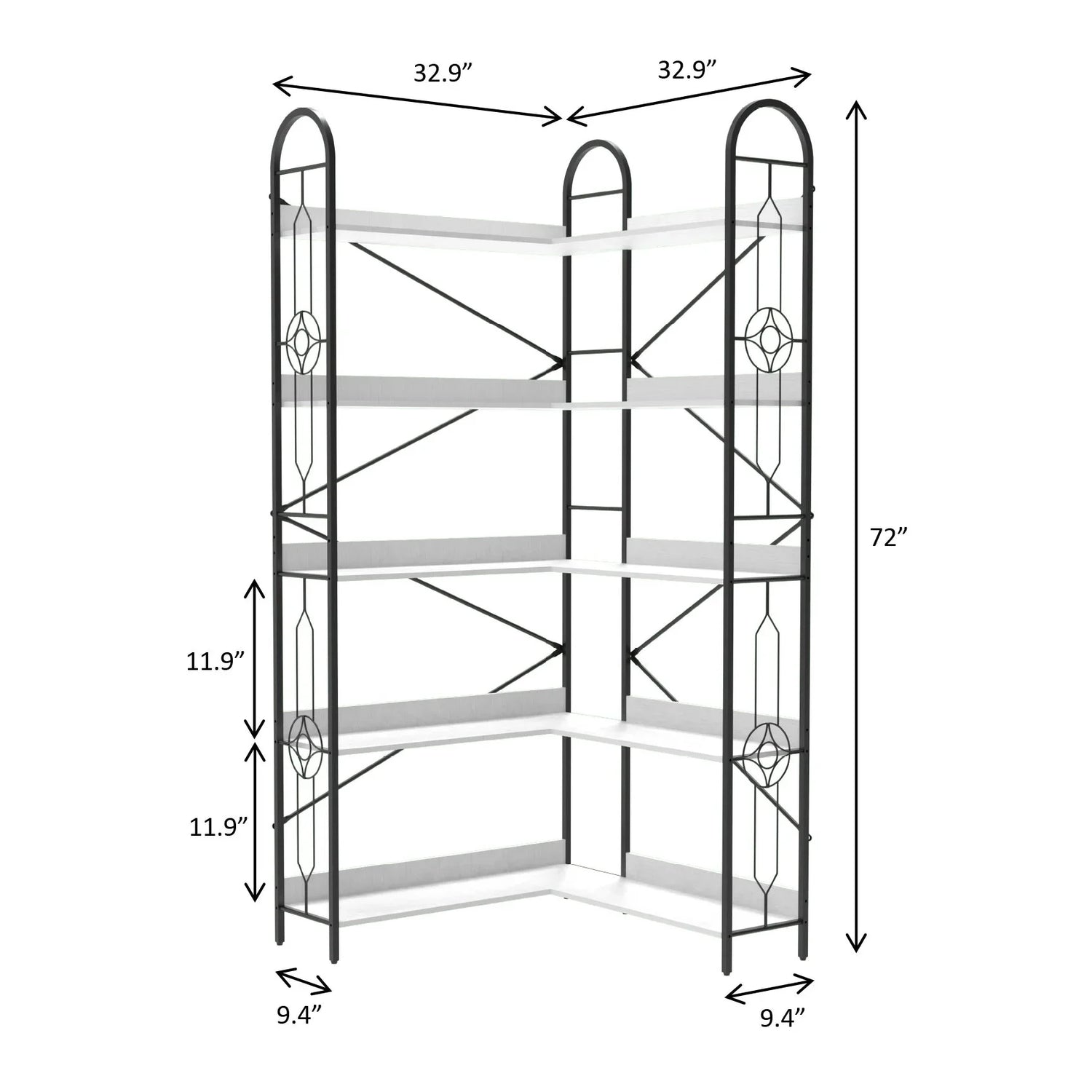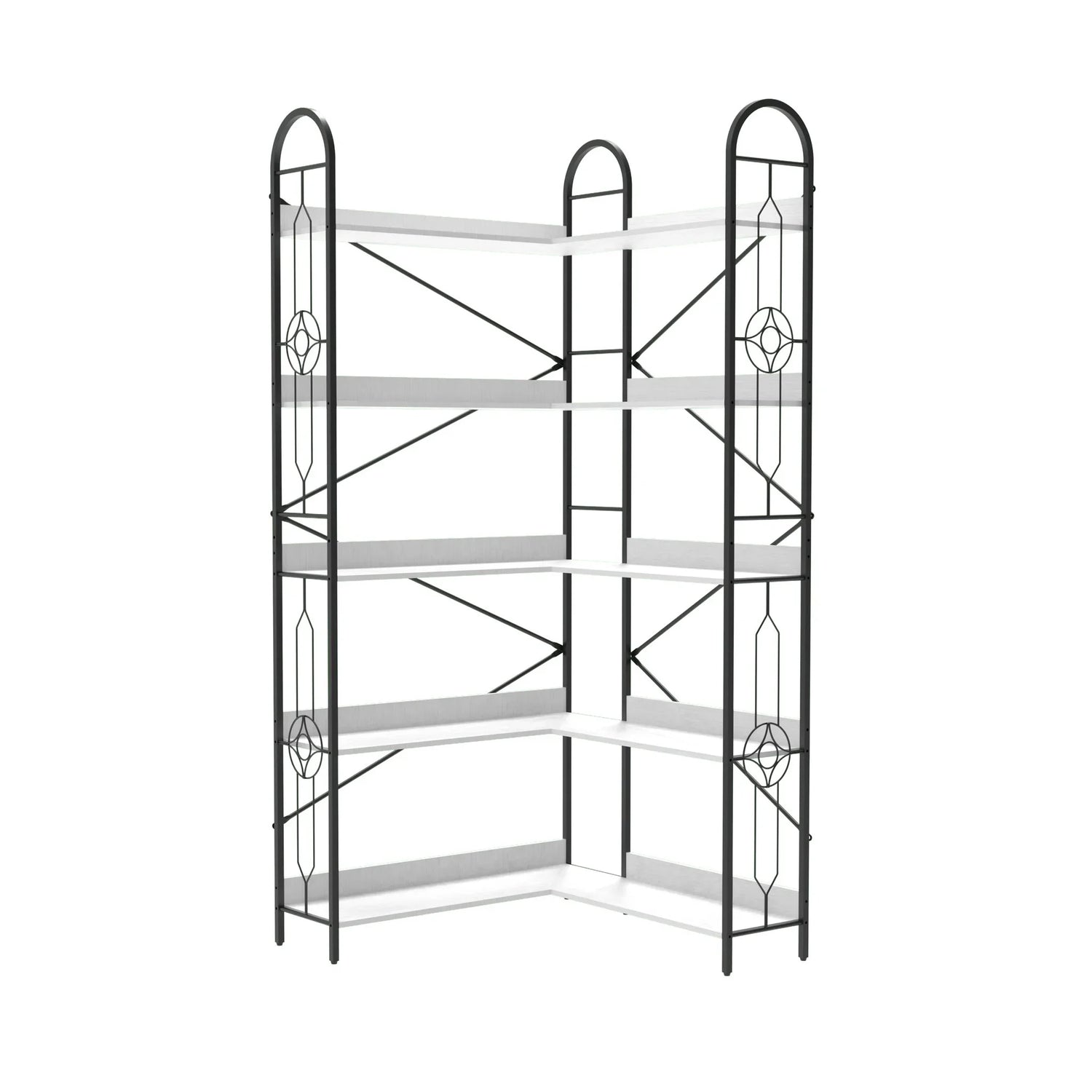 Industrial Style 5 Tier Corner Bookshelf With Thickened Iron Frame - Ivory White