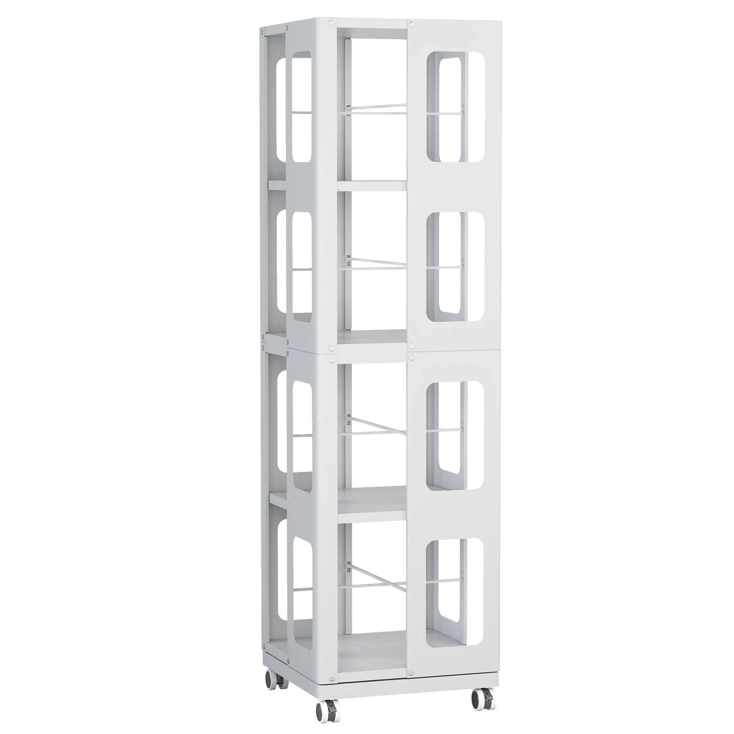 4 Tier All Steel Rotating Bookshelf With 360° Wheels, Large Size Sturdy & Spacious Book Rack, New Style Bookshelf - White