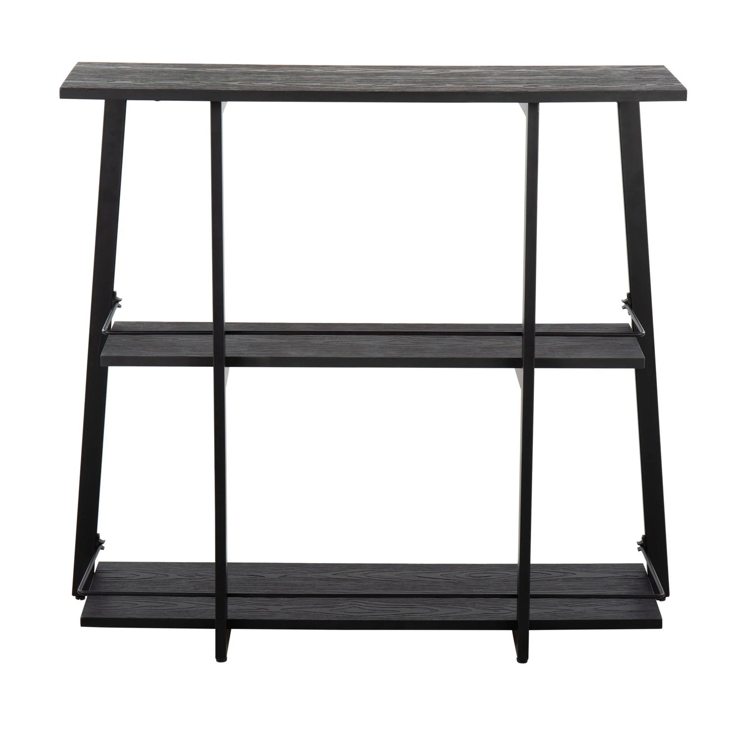 - Color & finish: Black finish on steel frame with textured wood-look shelves; natural variation in finish and wood grain may occur and screens may show slight differences from the product.