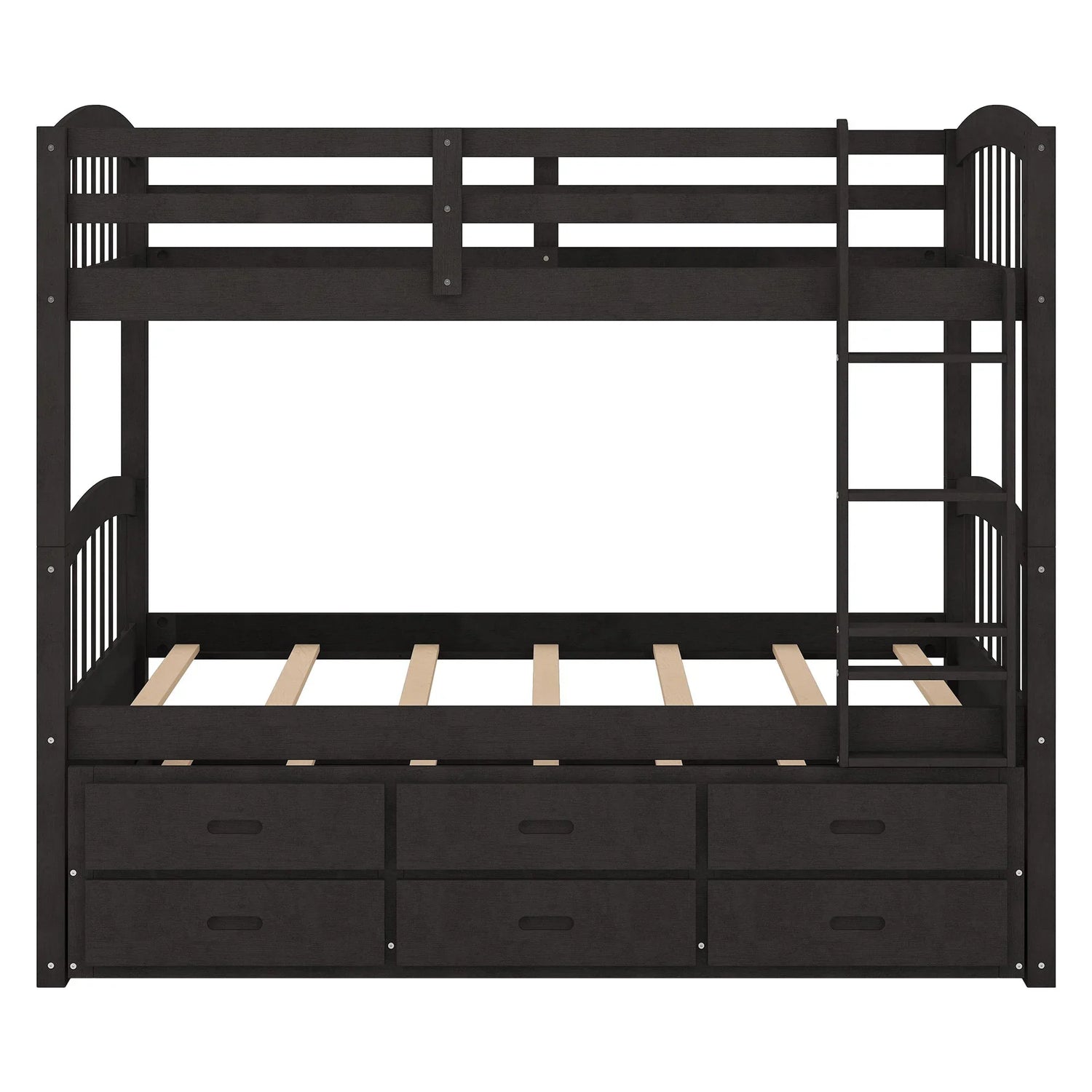 Twin Over Twin Wood Bunk Bed With Trundle And Drawers - Espresso