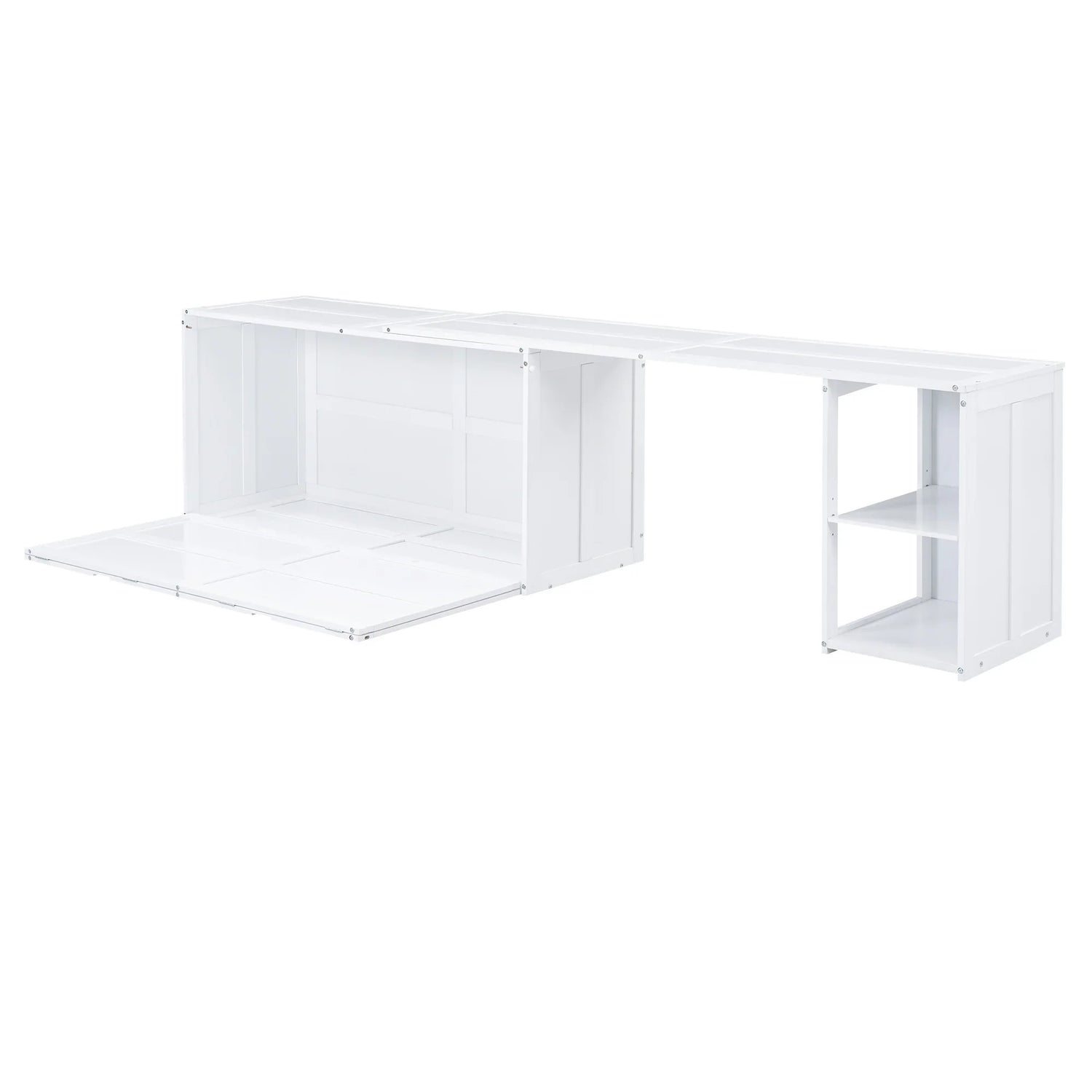 • Space-smart 2-in-1 design: Sleeps a queen mattress while converting to a full-length desk and shelving unit during the day—great for studio apartments and multifunction rooms.