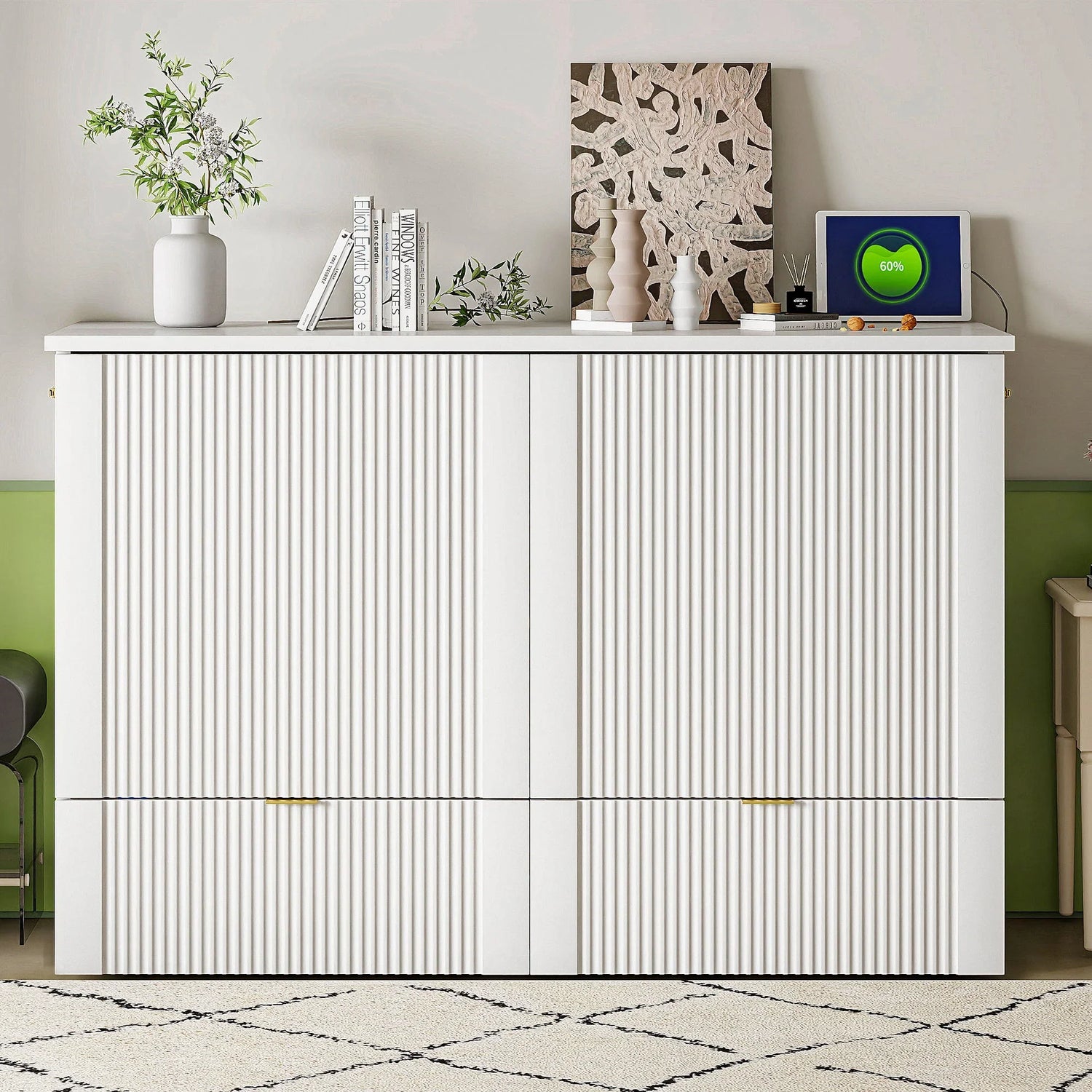 Multi-Function: This Murphy bed effortlessly transforms into a cabinet using a smooth roller skate mechanism, freeing up valuable floor space in any room. Perfect for a multi-use guest room, home office, or home gym, it also features convenient sockets and USB ports on the right side. Additionally, a large drawer provides extra storage when the bed is folded into a cabinet.