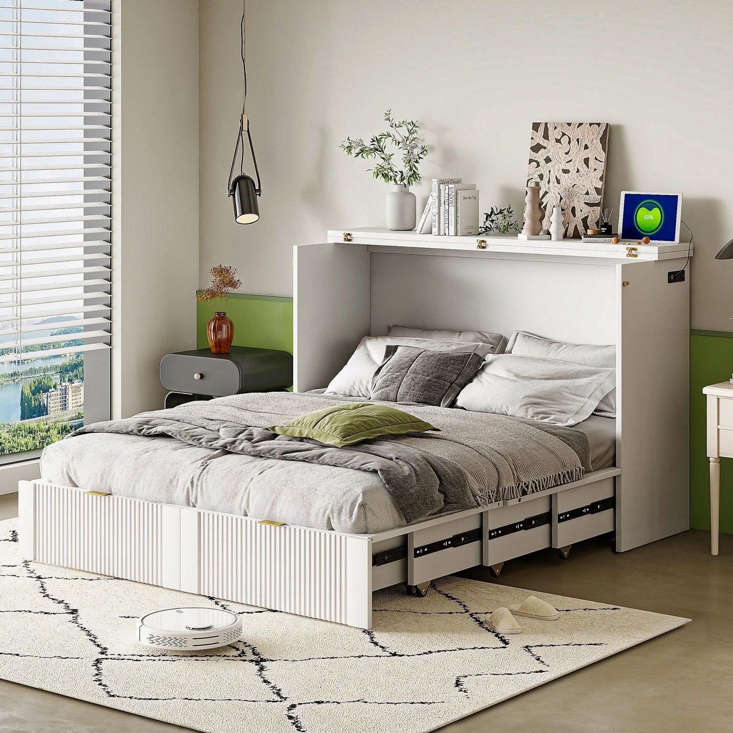 Murphy Bed With Drawer And A Set Of Sockets & USB Ports, Pulley Structure Design