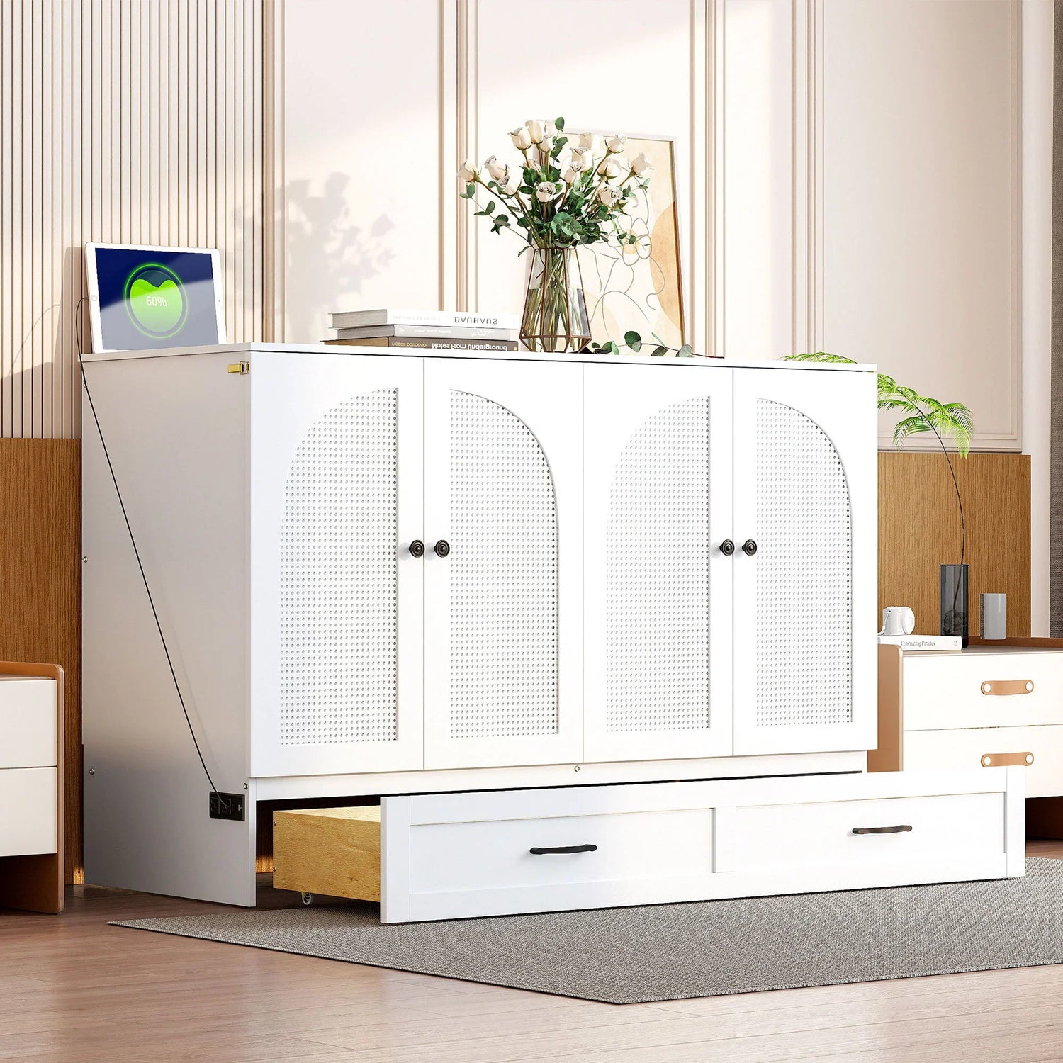 • Space-Saving Design: This foldable Murphy bed is ideal for small apartments or multifunctional rooms, offering a stylish sleeping solution while maximizing space. When folded, its top surface can display decorative items, and it securely stores a tri-fold mattress.