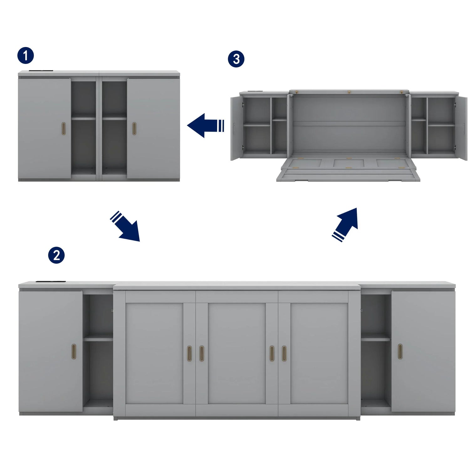Full Size Murphy Bed With Shelves, Cabinets And USB Ports