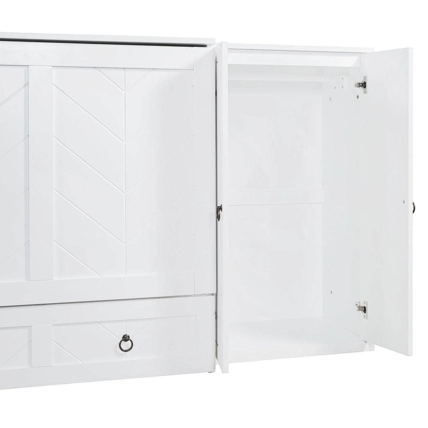 Queen Size Murphy Bed With USB Port, Large Drawer, And Wardrobe / Desk Combo Versatile Cabinet Bed - White