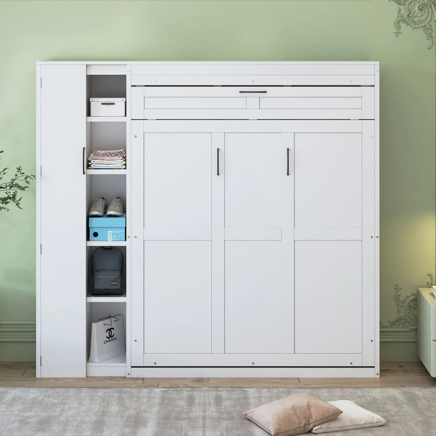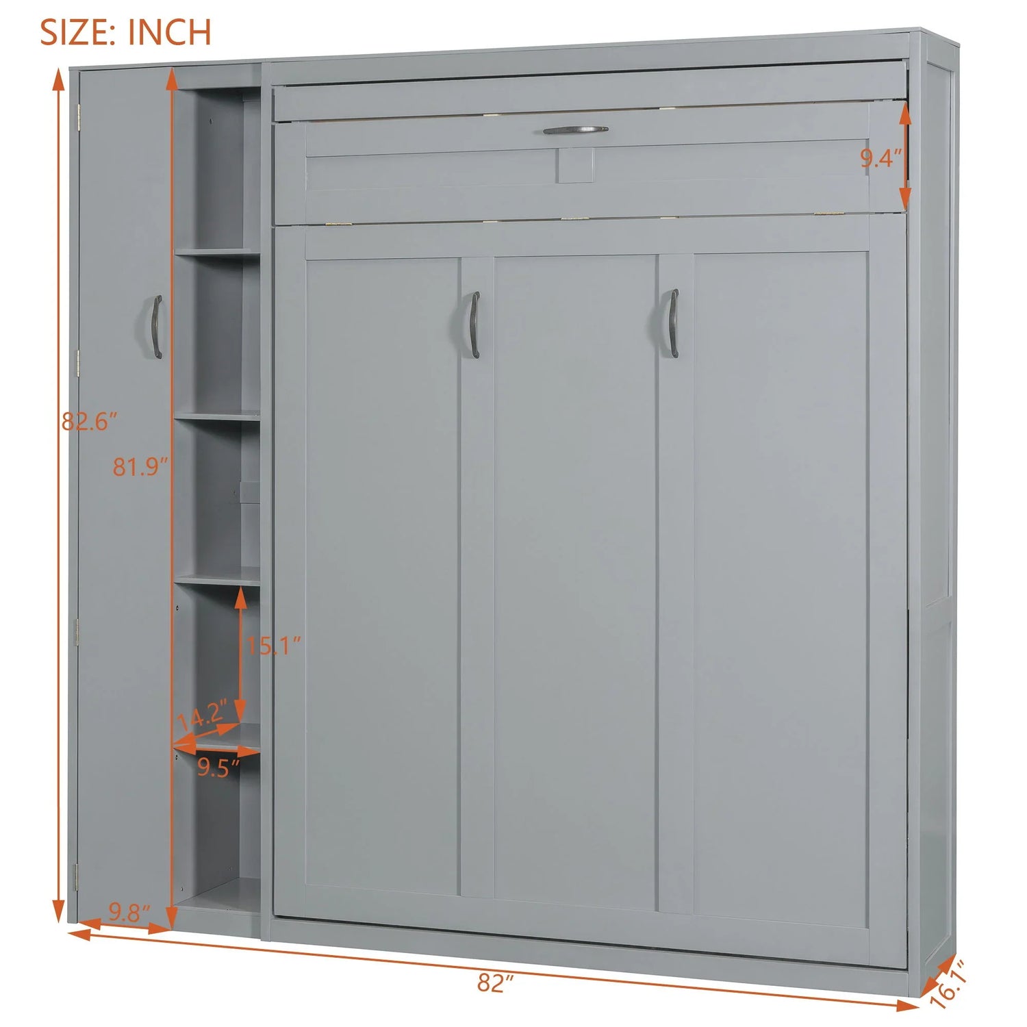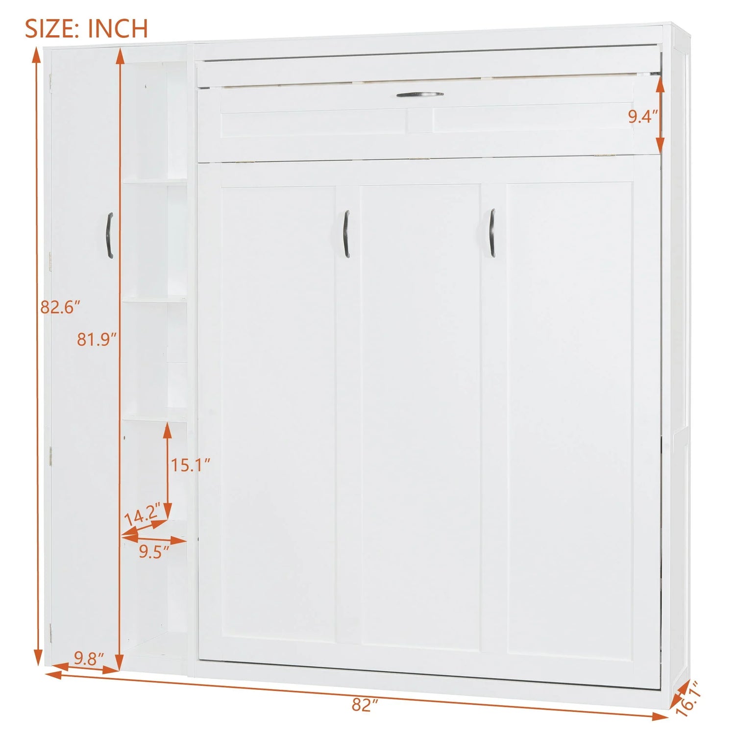 Full Size Murphy Wall Bed With Shelves, Wardrobe And LED Lights