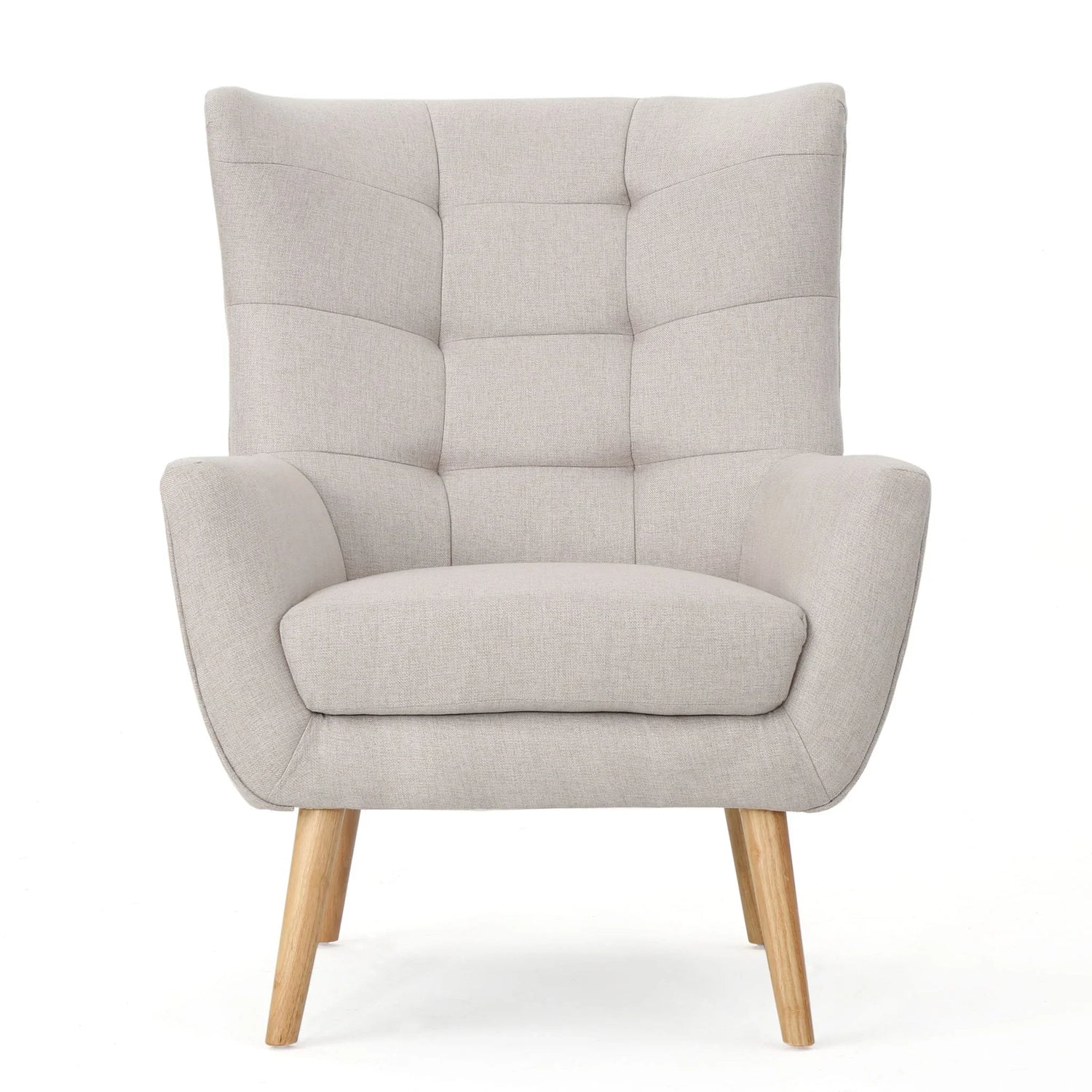 Mid Century Modern Wingback Club Chair With Tufted Back And Rubberwood Legs - Wheat