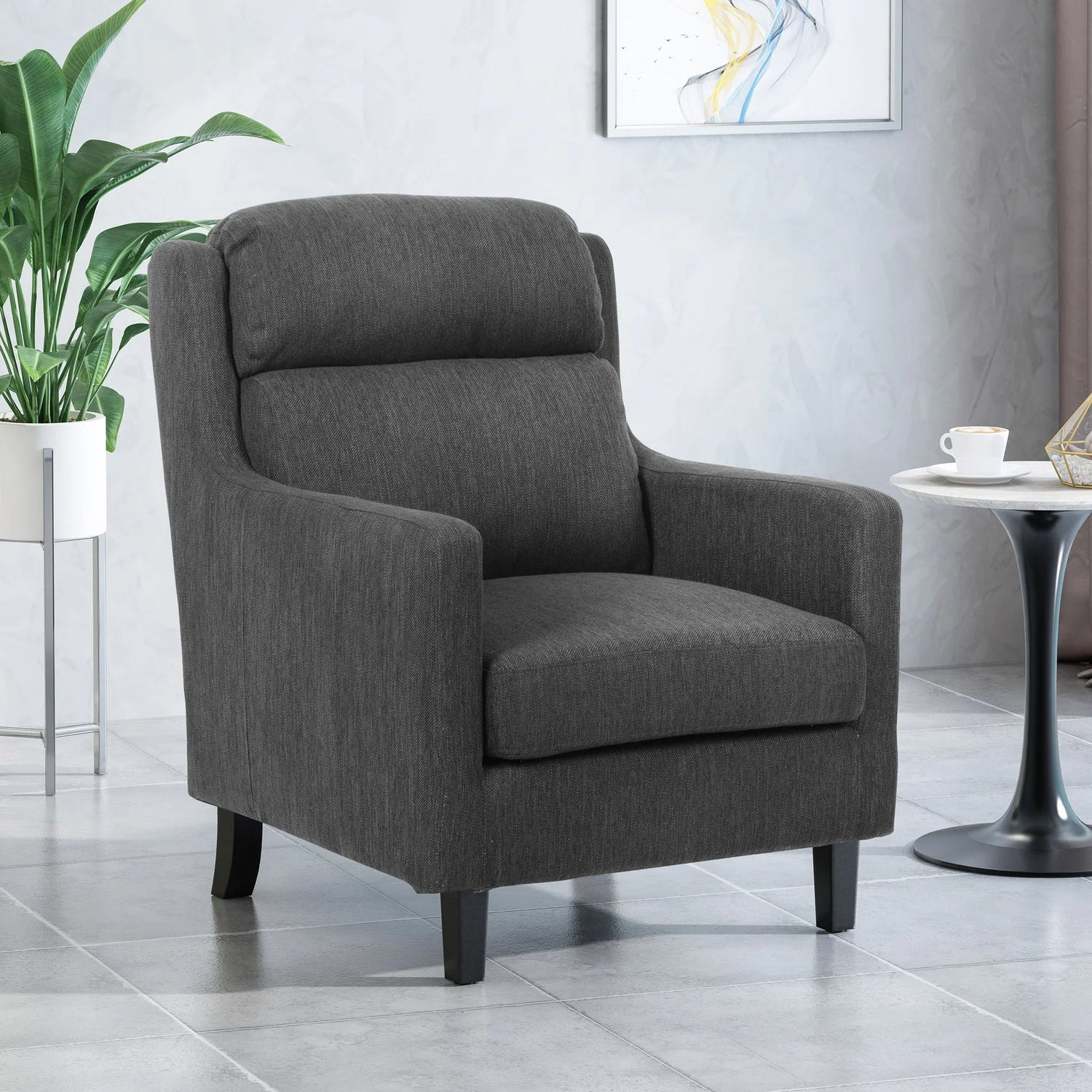 Contemporary Club Chair With Upholstered Fabric And Rubberwood Legs - Charcoal