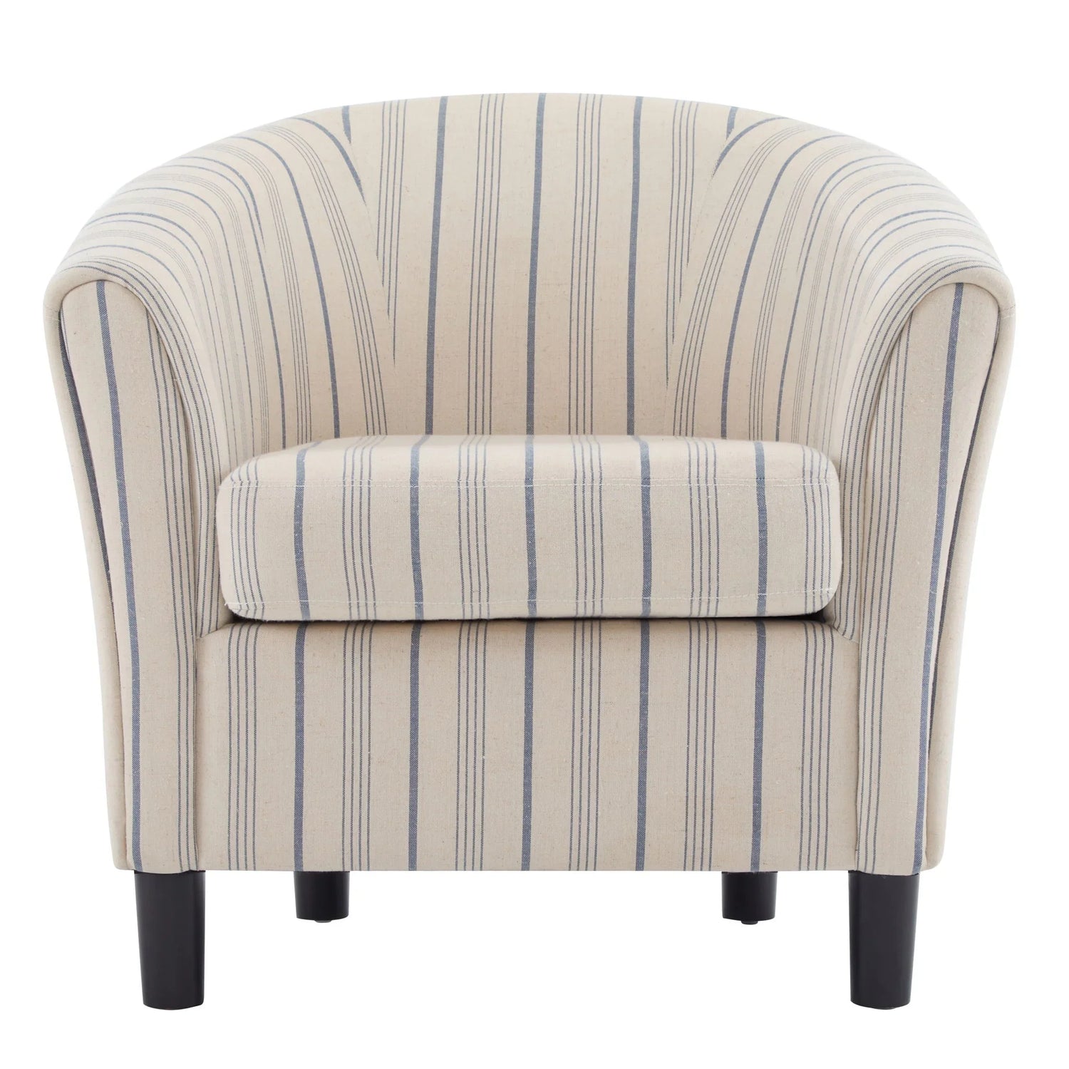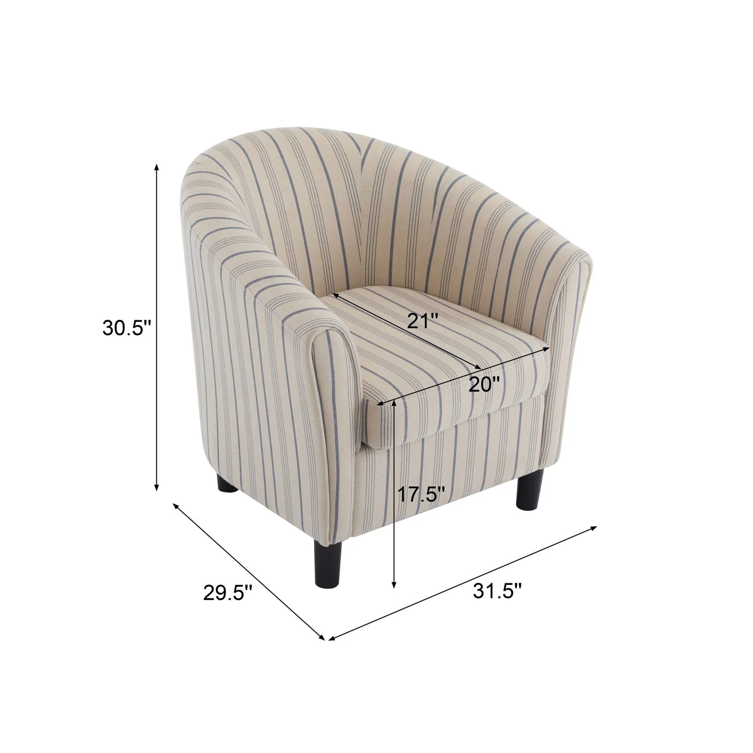Modern Barrel Fabric Striped Barrel Chair With Channel Stitching - Beige / Blue Stripe