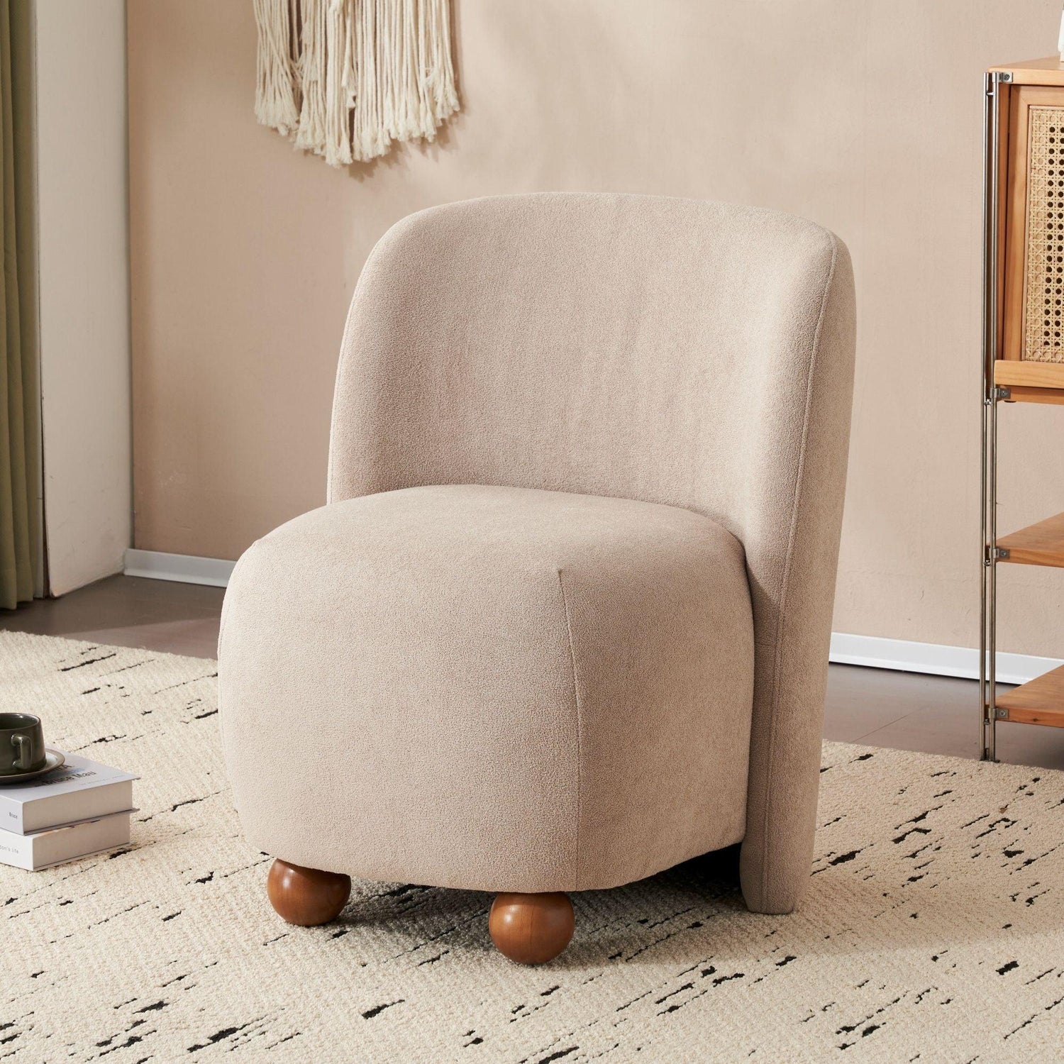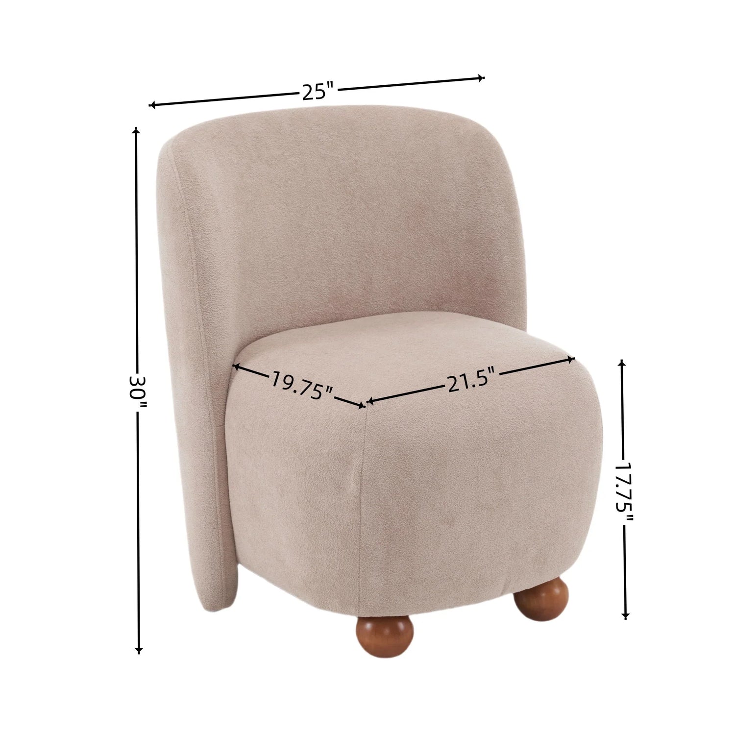 Modern Low Back Accent Chair, Upholstered Armless Living Room Chairs, Round Pine Wood Feet, For Small Living Spaces, Living Room - Khaki