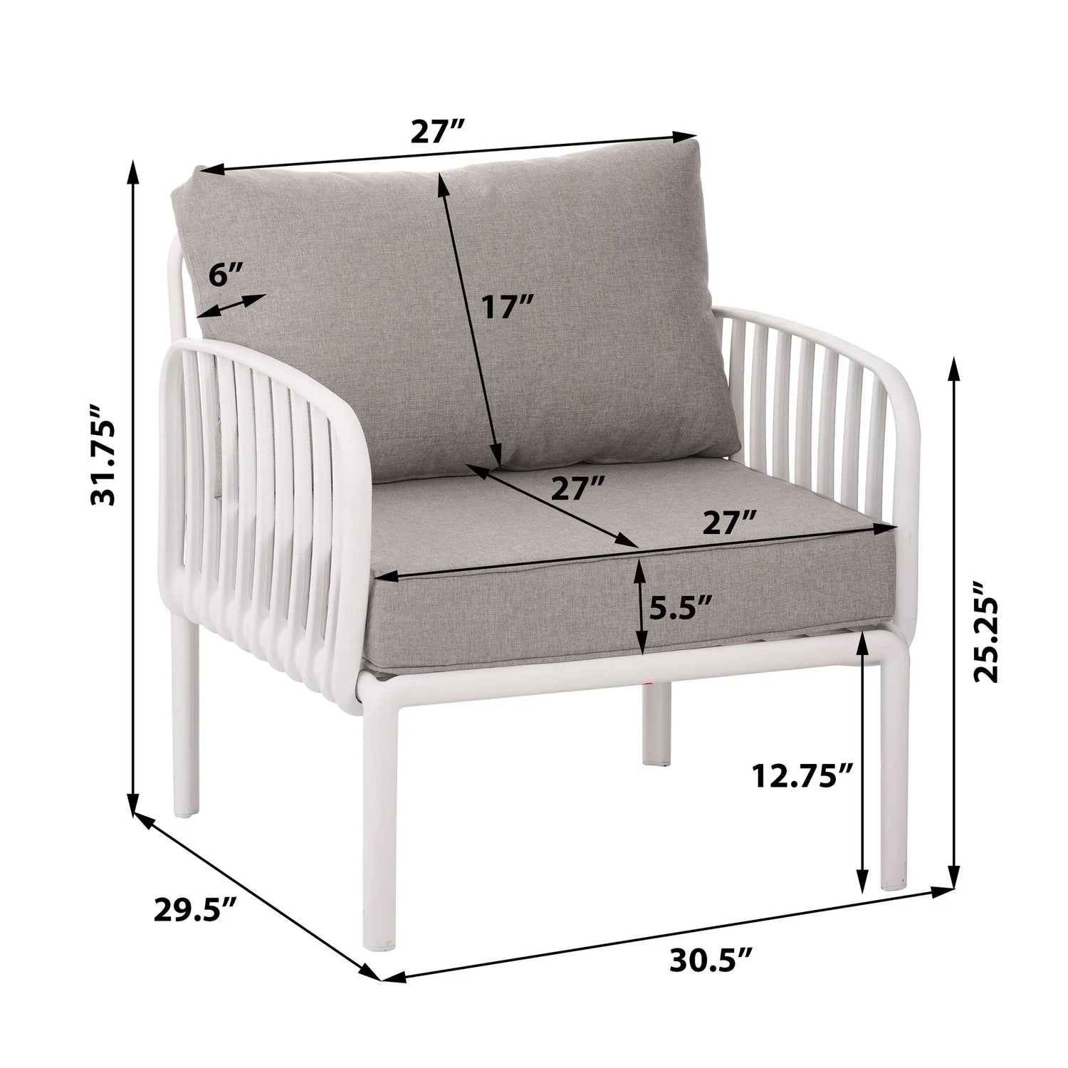 Outdoor Patio Club Chair, Modern Patio Furniture, Waterproof Thick Cushion Deep Seating For Porch, Balcony - White / Light Gray