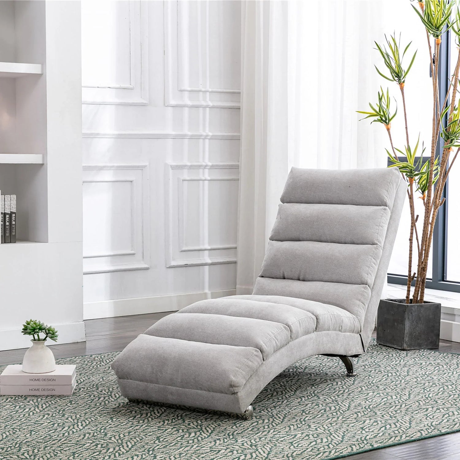 Linen Massage Chaise Lounge Indoor With Remote Control, Ergonomic Electric Massage Lounger With 5 Modes - Light Gray
