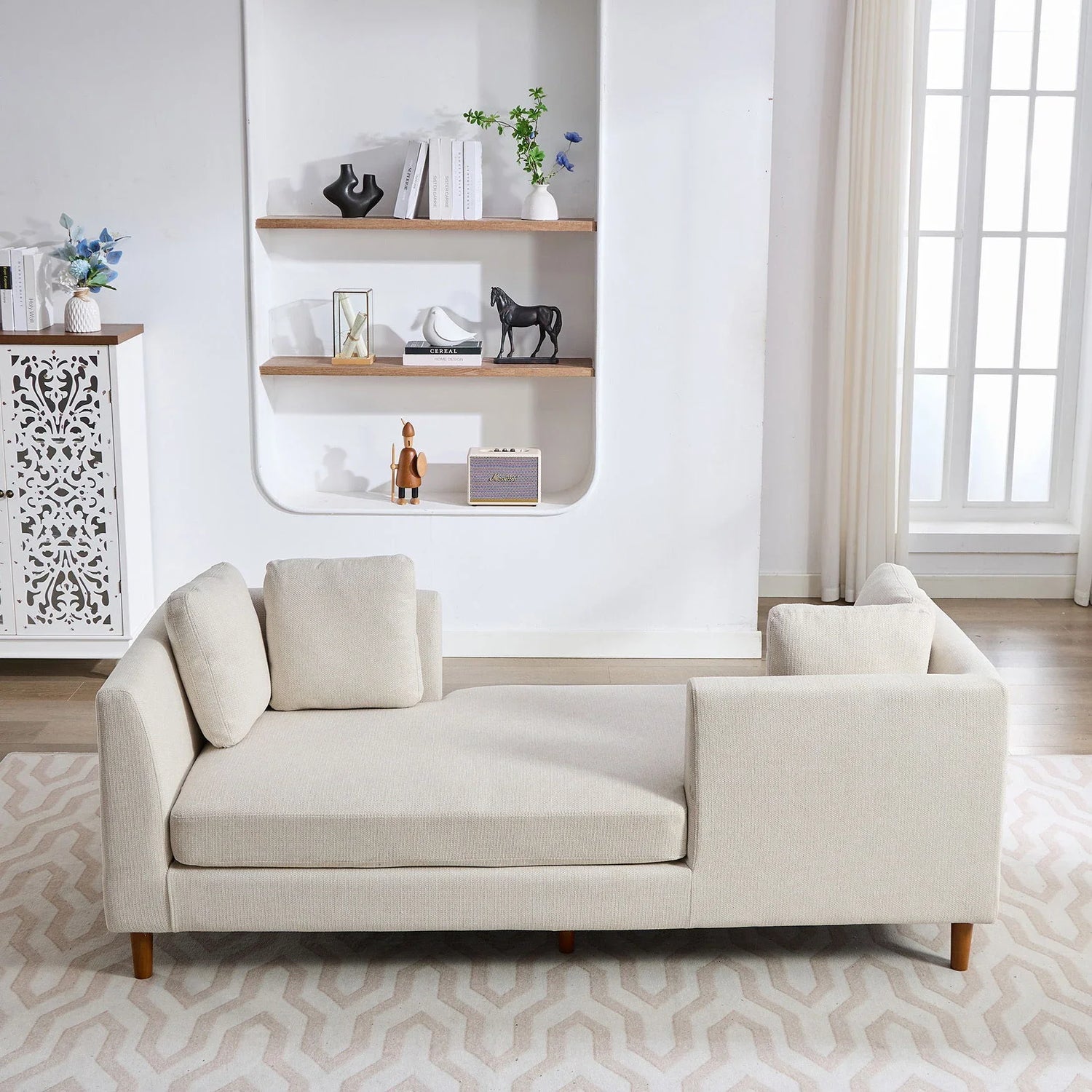 Wide Modern Double Sided Upholstered Chaise Lounge, Sleeper Sofa - Beige