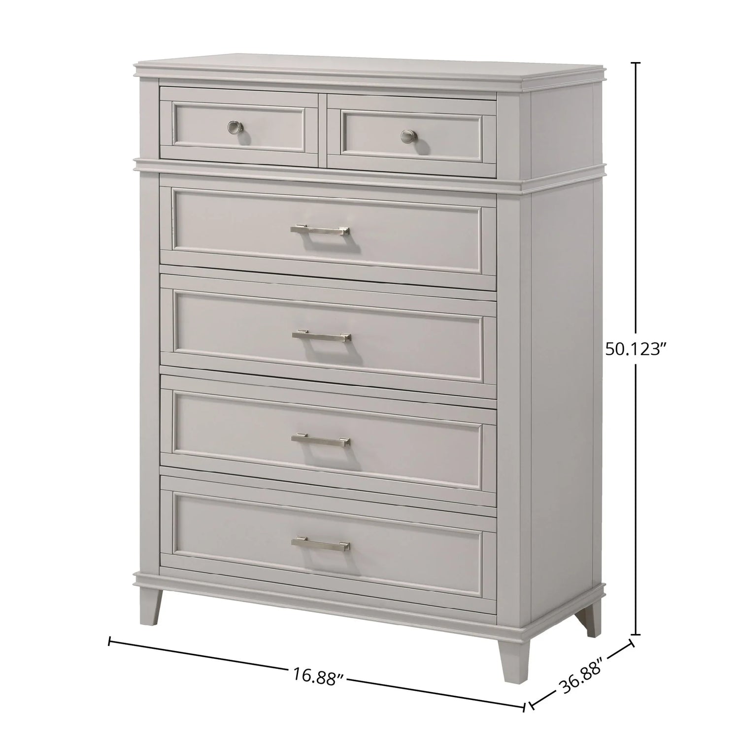 - Generous vertical storage: Five full-width drawers make it easy to separate sweaters, tees, sleepwear and linens without sprawling across the room.
