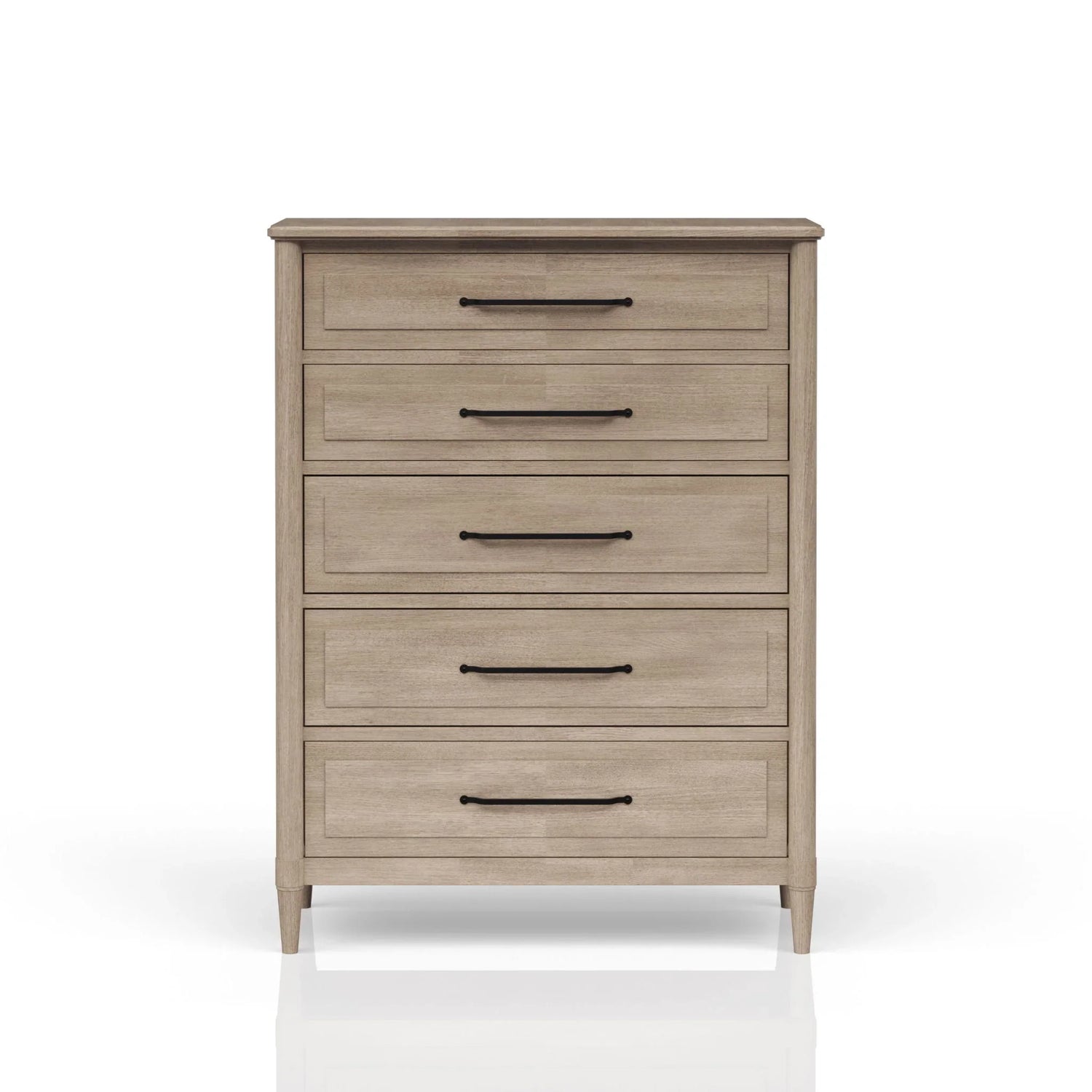 A clean, modern chest designed for someone who wants organized, timeless bedroom storage without fuss. The 5 Drawer Chest in Sand fits comfortably at the foot of a bed or against a bedroom wall, offering five deep drawers to keep clothing, linens and everyday accessories neatly tucked away. Its understated sand-colored wood finish and simple recessed drawer fronts pair easily with both coastal and contemporary decor.