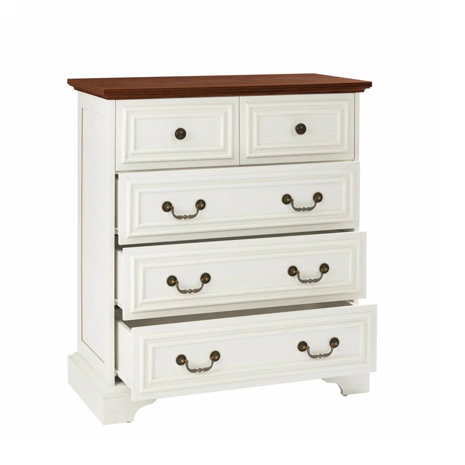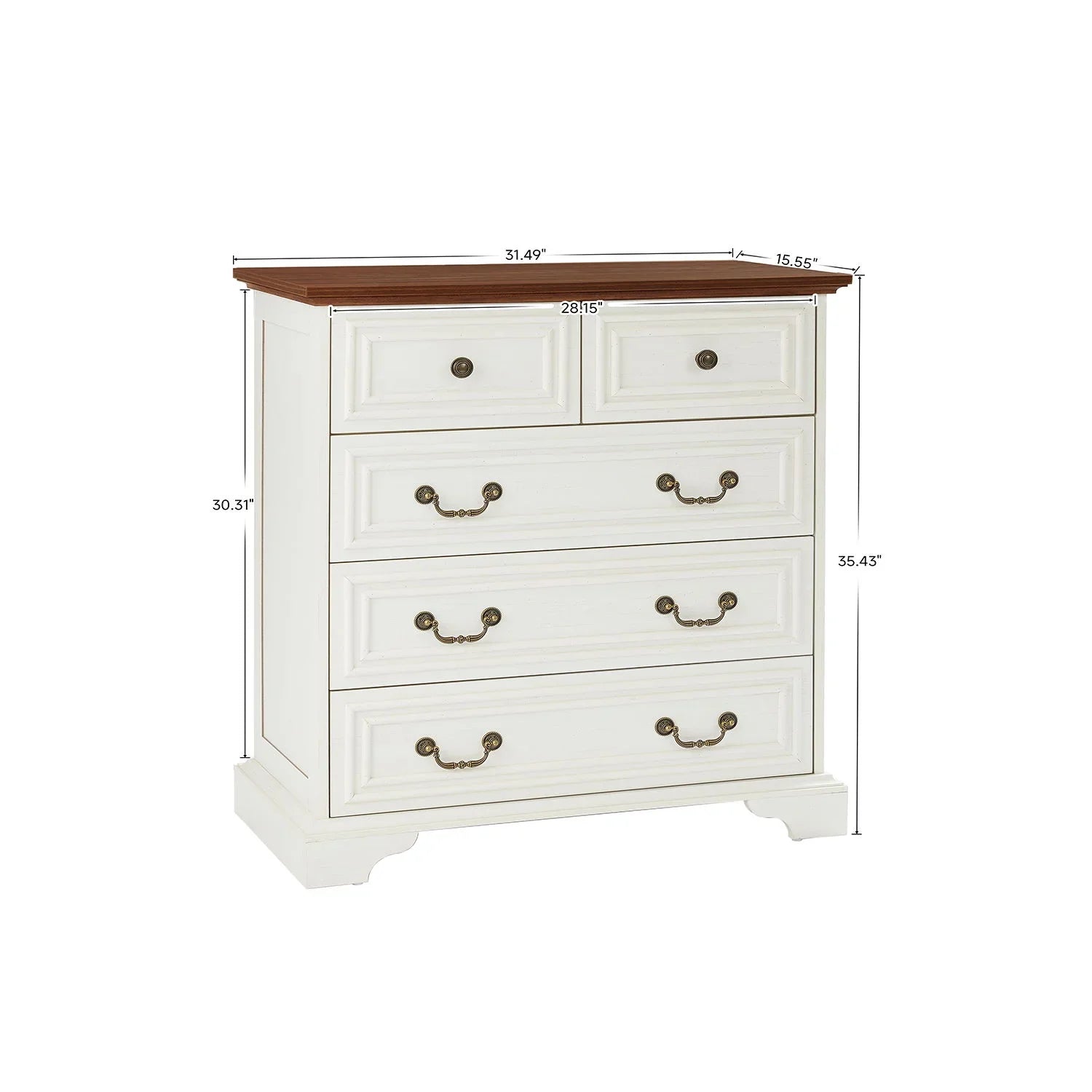 Modern 5 Drawer Dresser For Bedroom Ample Storage Wide Chest Of Drawers - Antique Brown / White