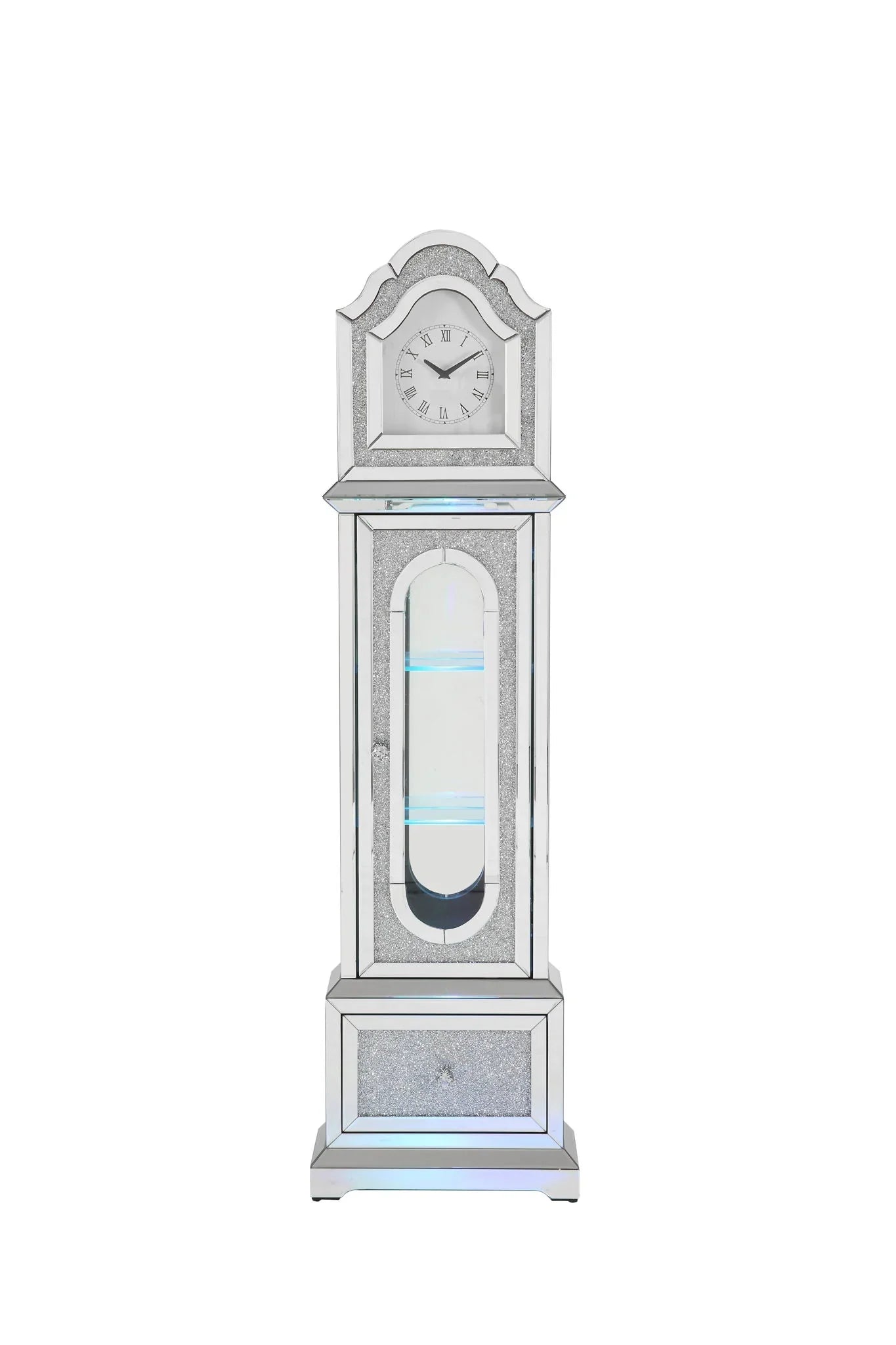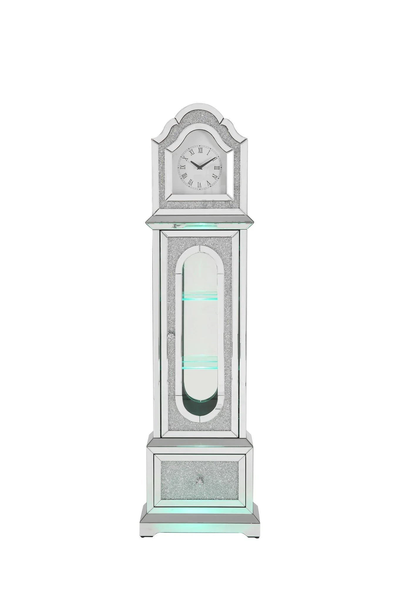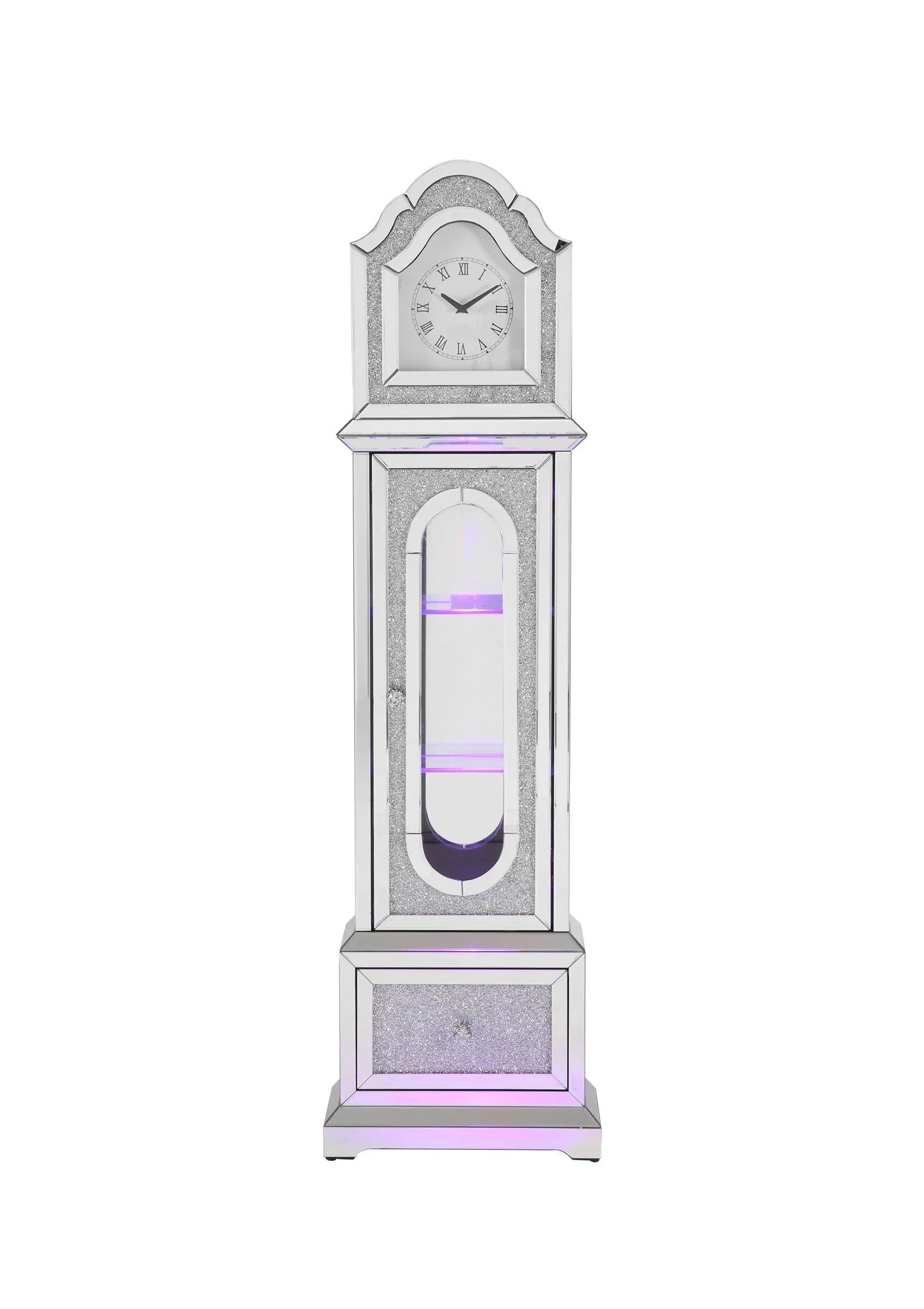 Noralie - Mirrored & Faux Diamonds Grandfather Clock With LED - Silver Gray