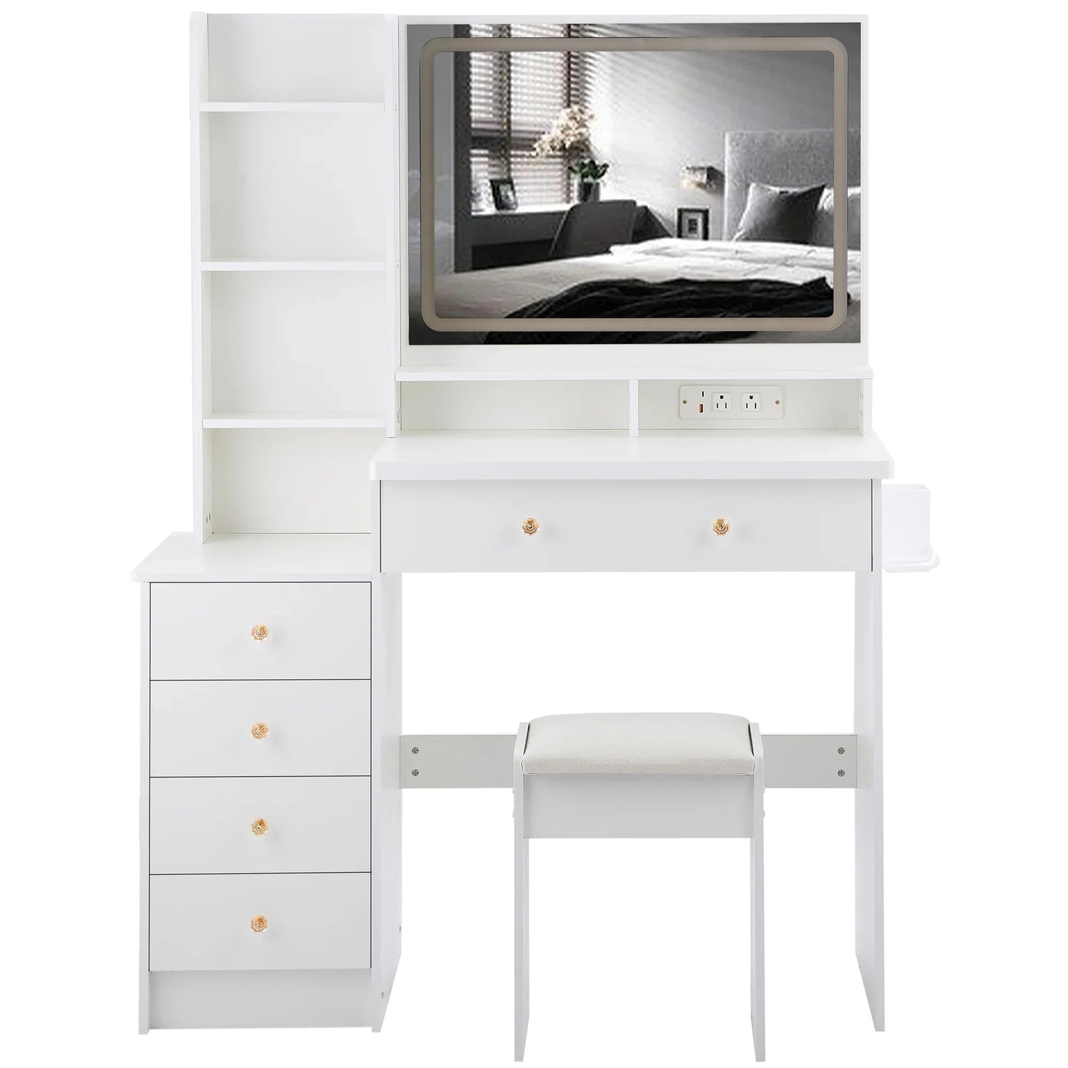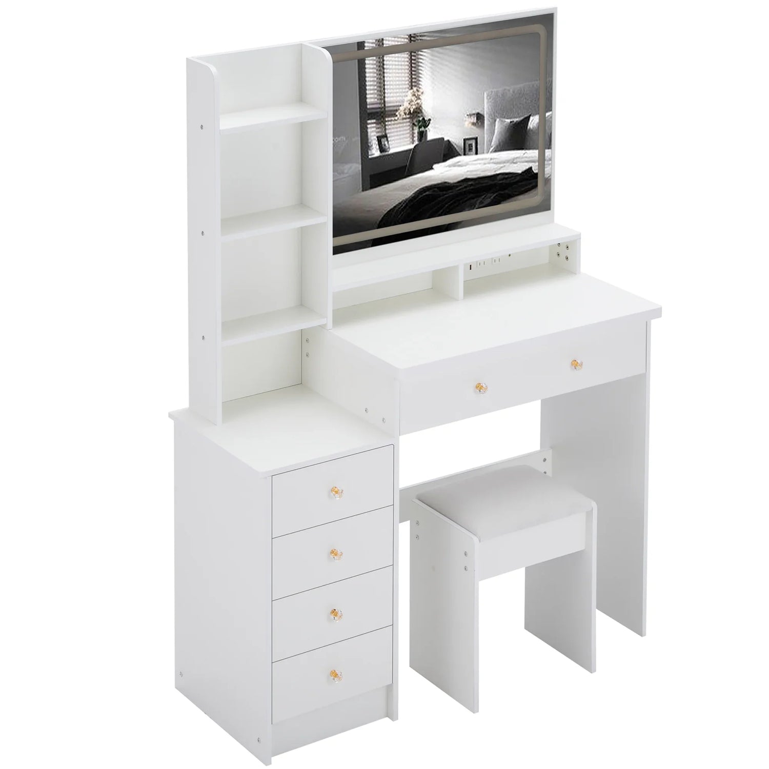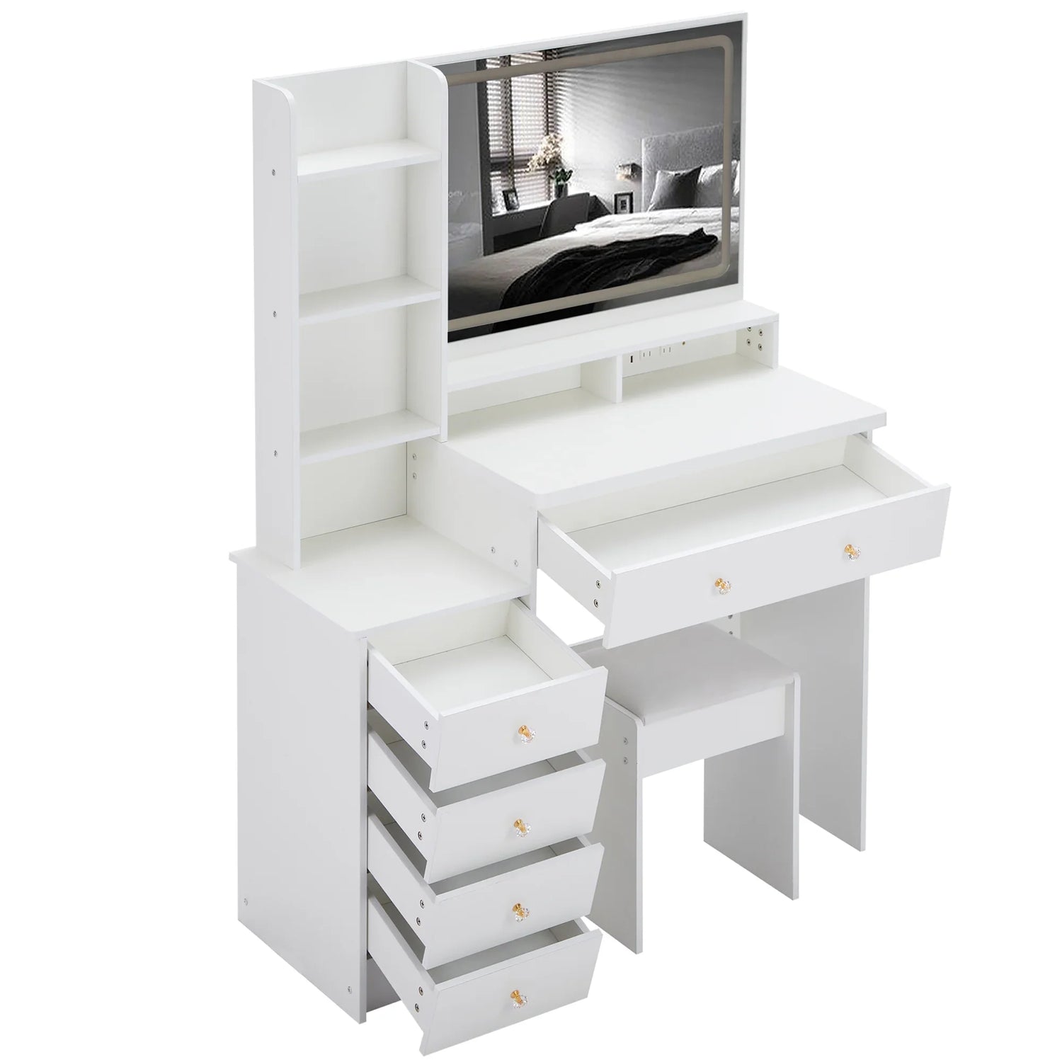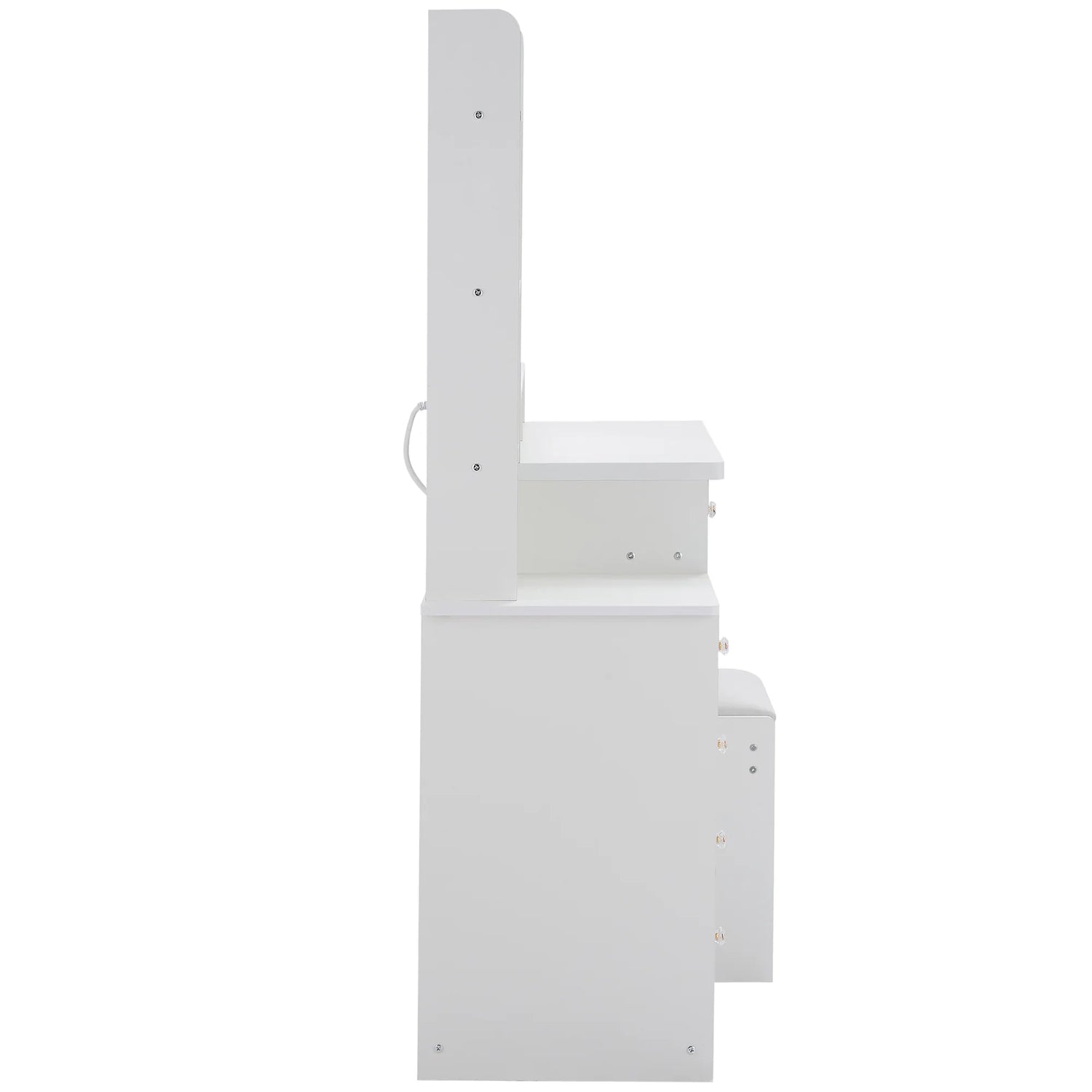 Vanity Desk With Cushioned Stool Mirror Makeup White