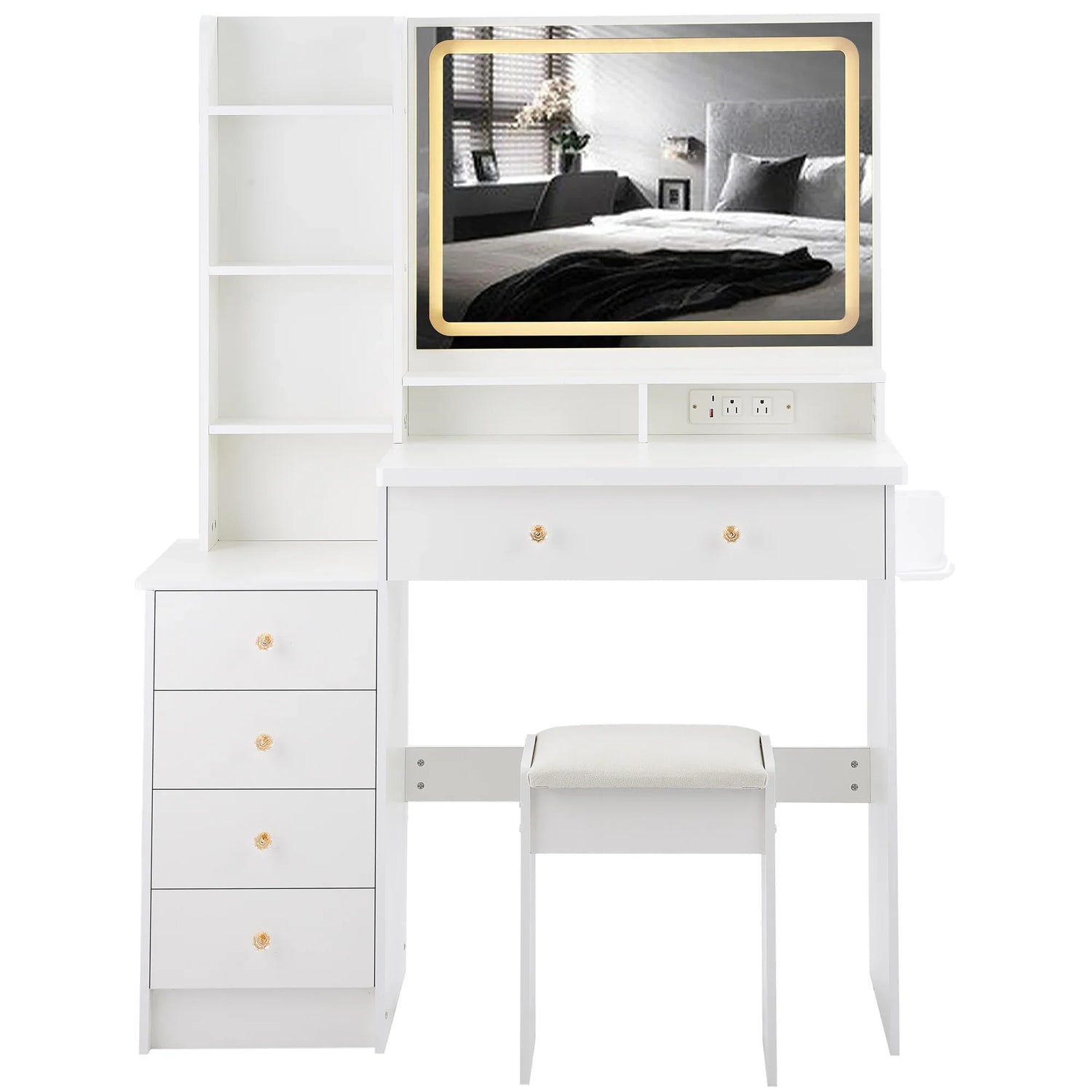 Ideal for anyone looking to create a dedicated space for their daily beauty routine, this vanity desk with cushioned stool and mirror fits seamlessly into bedrooms, dressing rooms, or even compact bathrooms. It's perfect for applying makeup, styling hair, or simply organizing your essentials, offering a blend of functionality and elegance in a modern American design with luxurious touches
