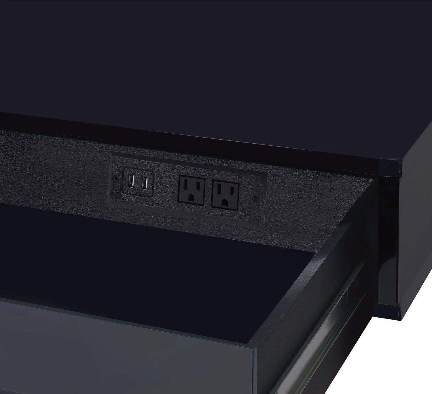 Coleen - High Gloss Writing Desk With USB - Black / Chrome
