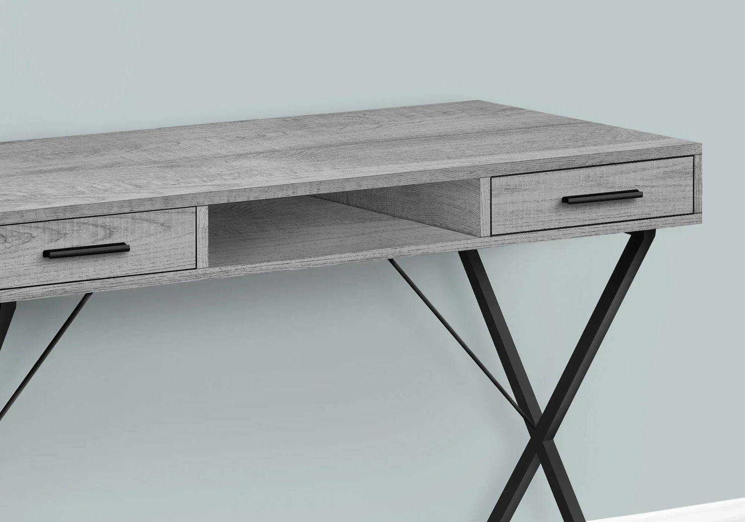 Computer Desk, Home Office, Laptop, Left, Right Set-Up, Storage Drawers, Work, Contemporary, Modern - Gray