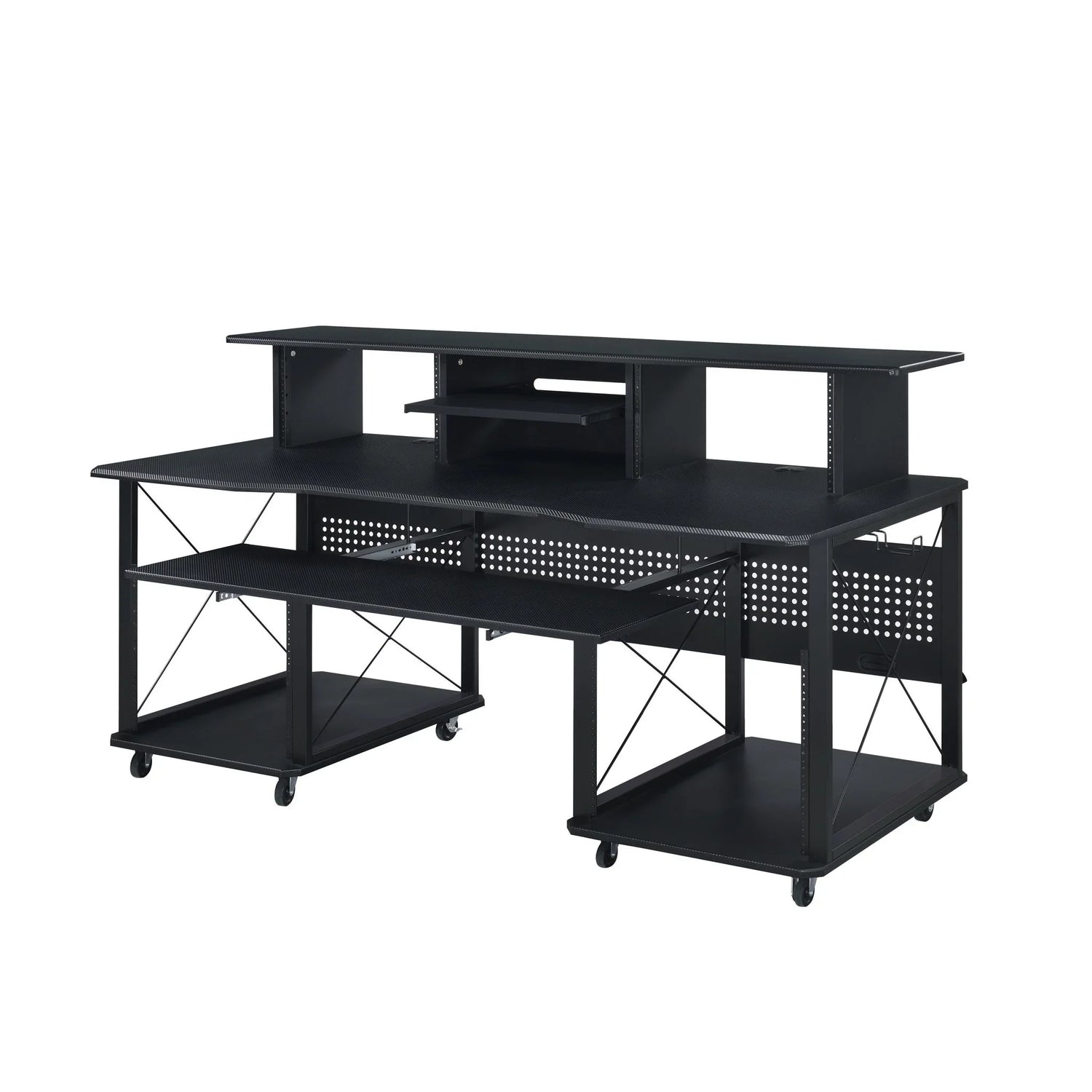 • Integrated Features: This desk includes a keyboard tray suitable for up to 76-key keyboards, an earphone rack, and preformed screw holes for secure equipment installation, enhancing functionality.