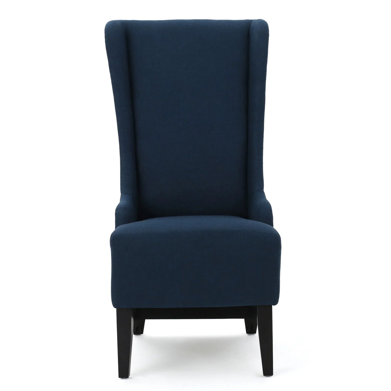 Contemporary Dining Chair With High Back And Birch Wood Legs - Navy Blue