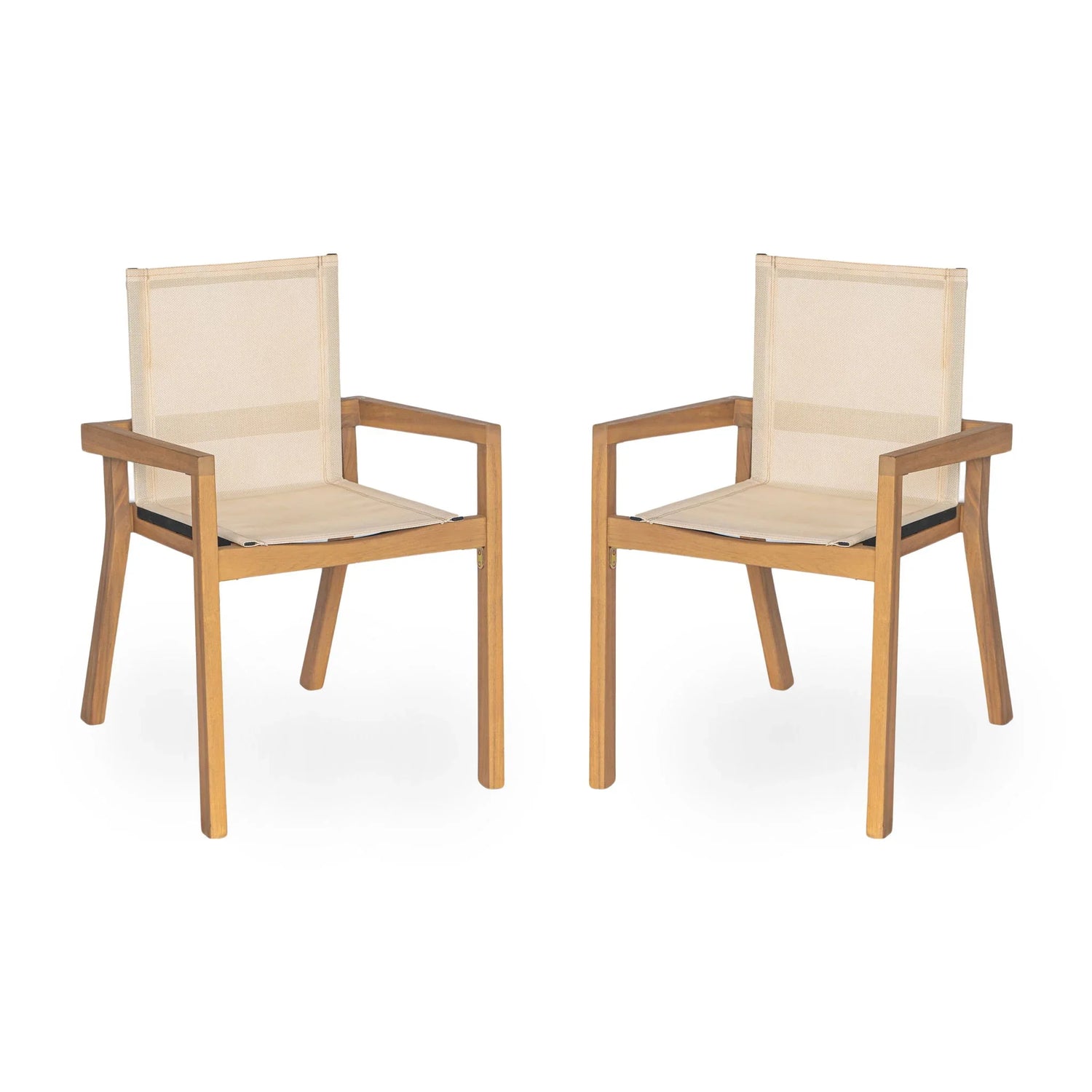 - Mesh Seating: With a mesh seating area and acacia wood frame, these chairs offer optimal design for outdoor use, providing both comfort and durability for leisurely dining experiences.