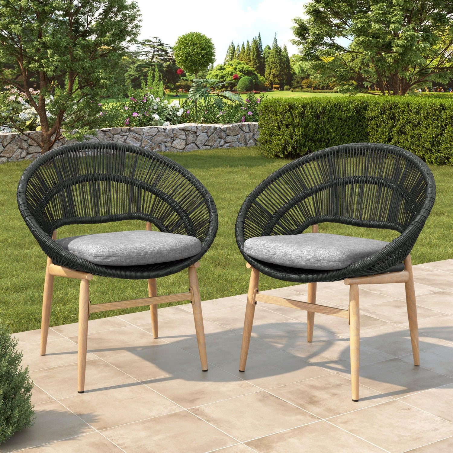 Cyril - Outdoor Wicker Papasan Style Dining Chair (Set of 2) - Dark Gray / Teak