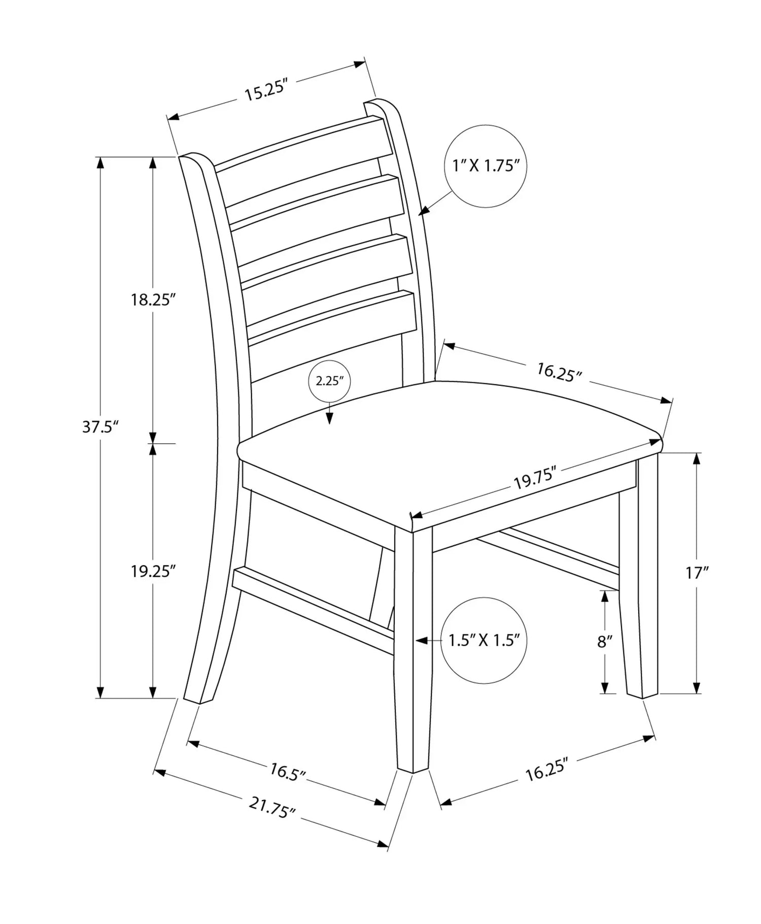 • Style: Transitional; ladder/slat back.