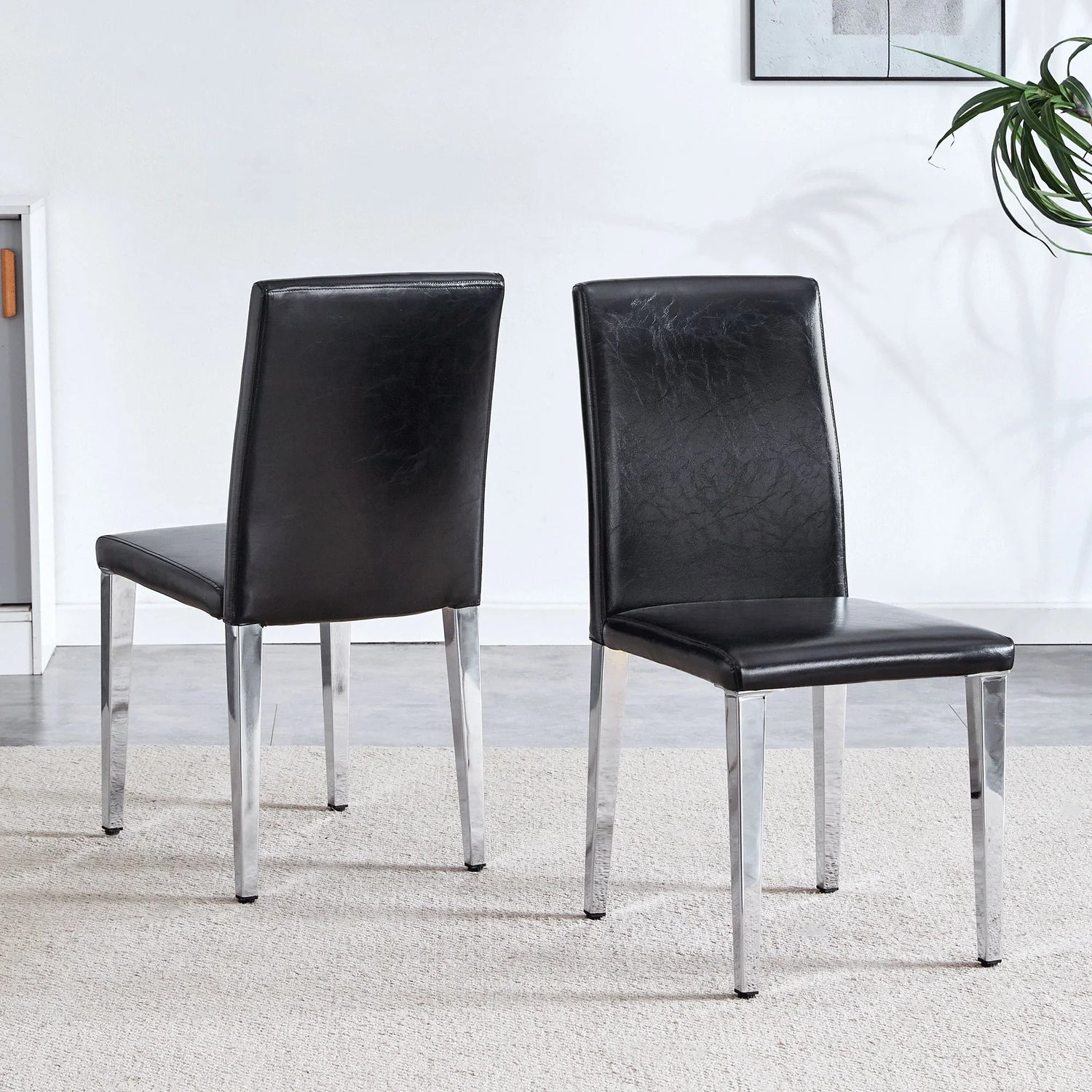 Built for practical use, each chair combines a PU-upholstered seat and back with sturdy silver metal legs for dependable support and an industrial-leaning finish. The slim profile keeps visual clutter down while a gently padded seat offers comfortable seating for dinners and longer conversations. Ideal as a coordinated dining set or as extra seating in an entry or office, these chairs are made to be straightforward, stylish, and simple to maintain.
