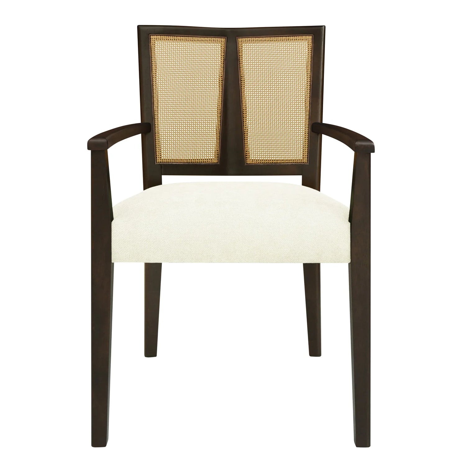 Mid Century Modern Arm Dining Chair (Set of 2) With Rattan Backrest - Beige / Dark Brown