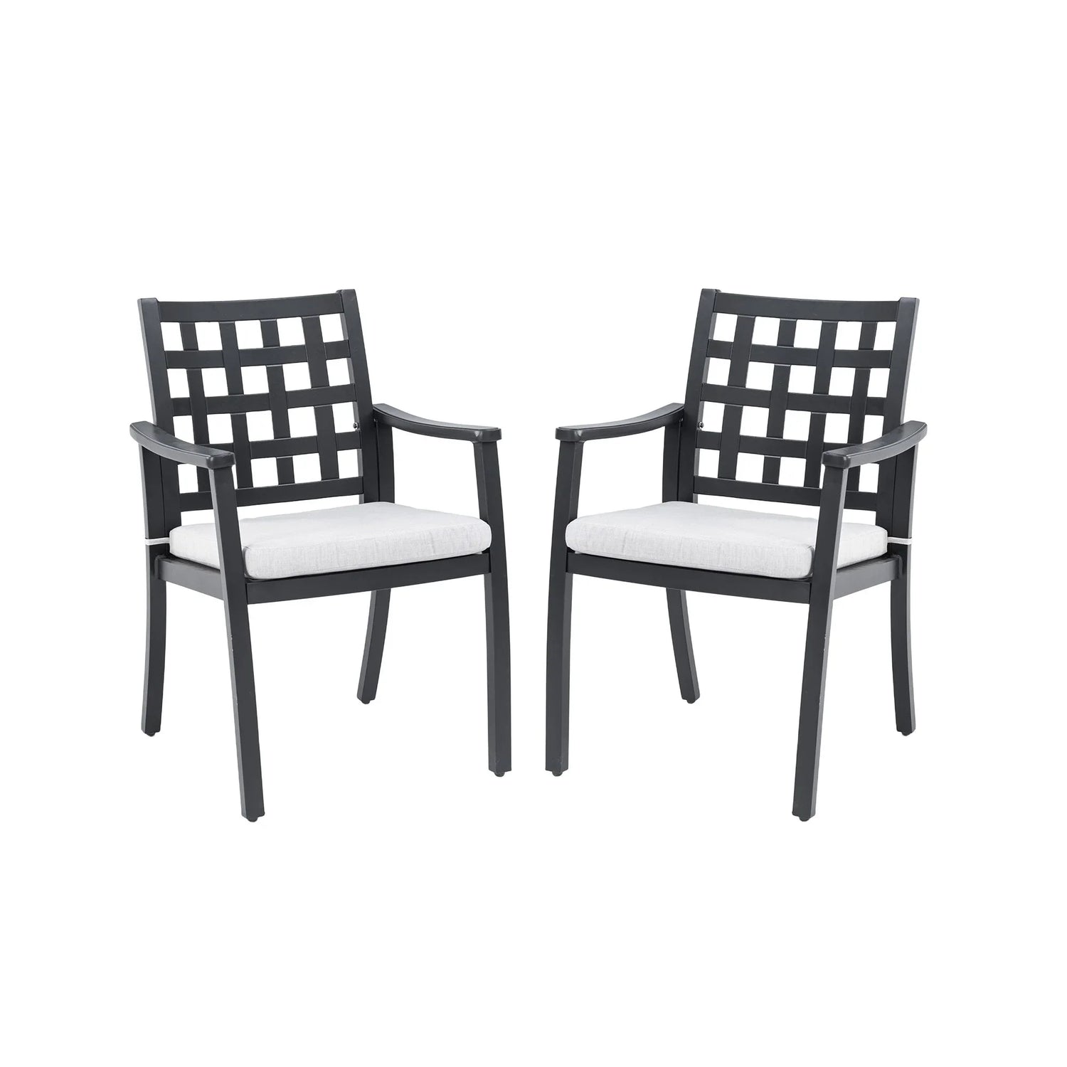 Modern Classic Cast Outdoor Patio Dining Chairs, Ergonomic Lattice Backrest Design, Sunbrella Cushion, Weather Resistant And Durable (Set of 2) - Ember Black