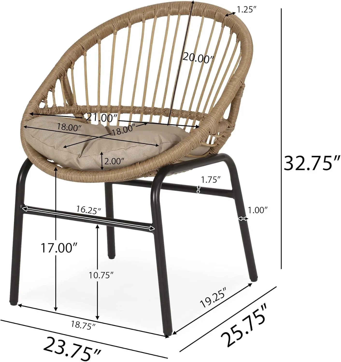 Outdoor Accent Chair With Curved Back And Basket Frame, (Set of 2) - Light Brown / Beige