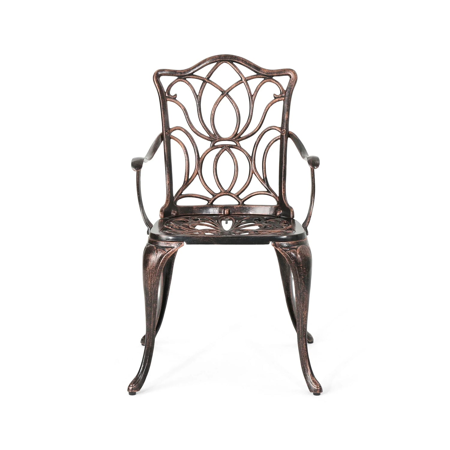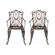 Outdoor Dining Chair With Floral Design And Curved Saber Legs (Set of 2) - Copper