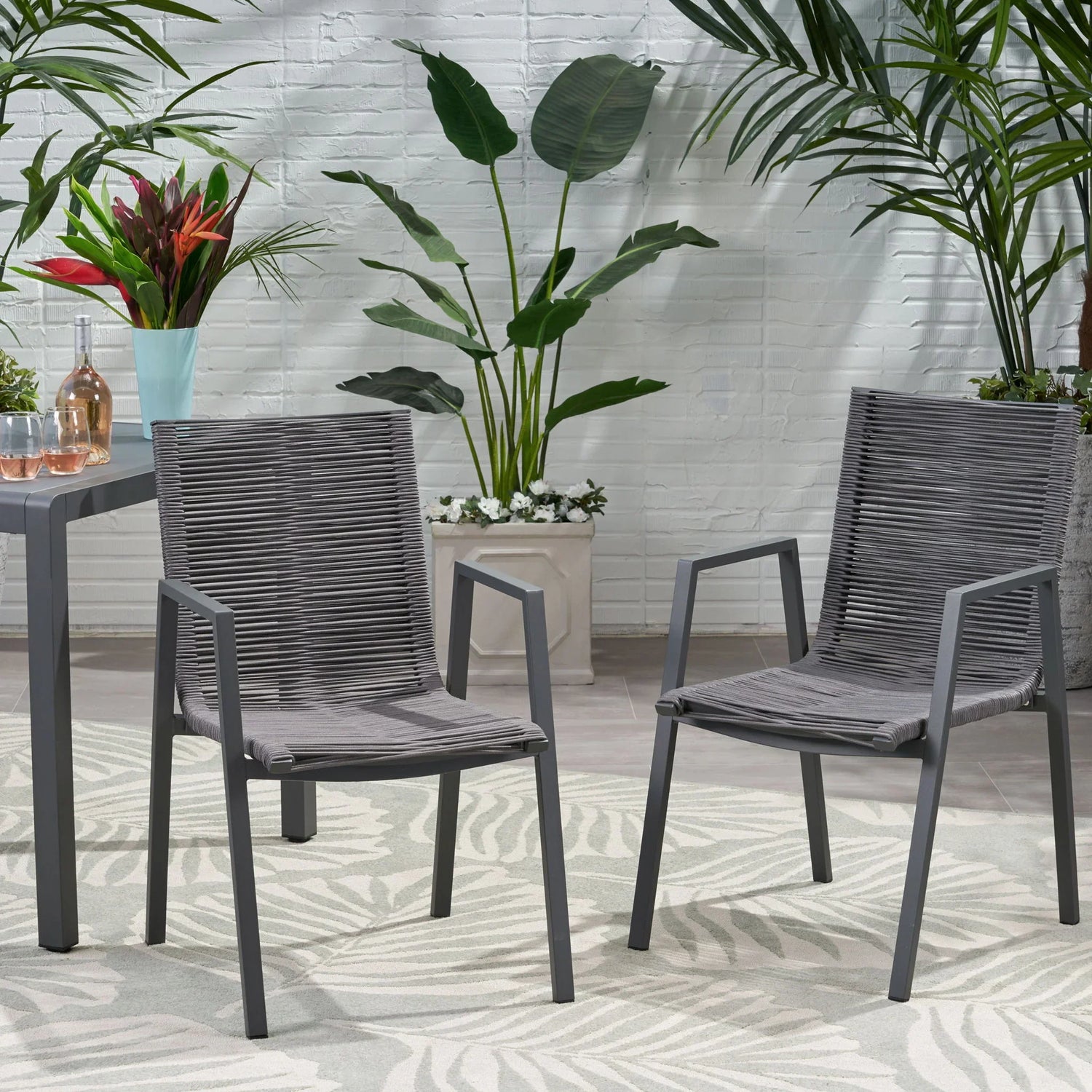 Outdoor Modern Aluminum Dining Chair With Rope Seat (Set of 2) - Gray / Dark Gray