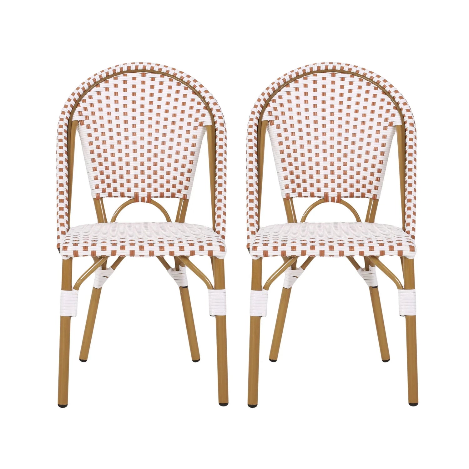 Outdoor Rattan And Aluminum French Bistro Chairs (Set of 2) Bamboo Print - Rust Red / White