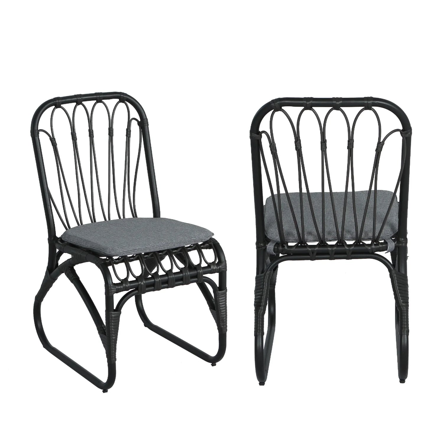 Outdoor Wicker Dining Chairs With Washable Cushion (Set of 2), Durable Rattan Chairs For Backyard, Garden, Patio - Black / Gray