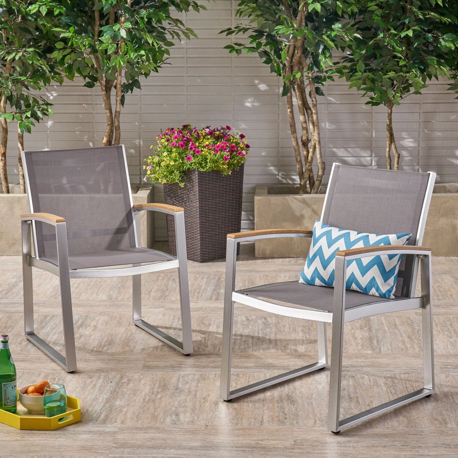 Poetic - Outdoor Dining Chair With Faux Wood Arms And Aluminum Frame (Set of 2) - Gray