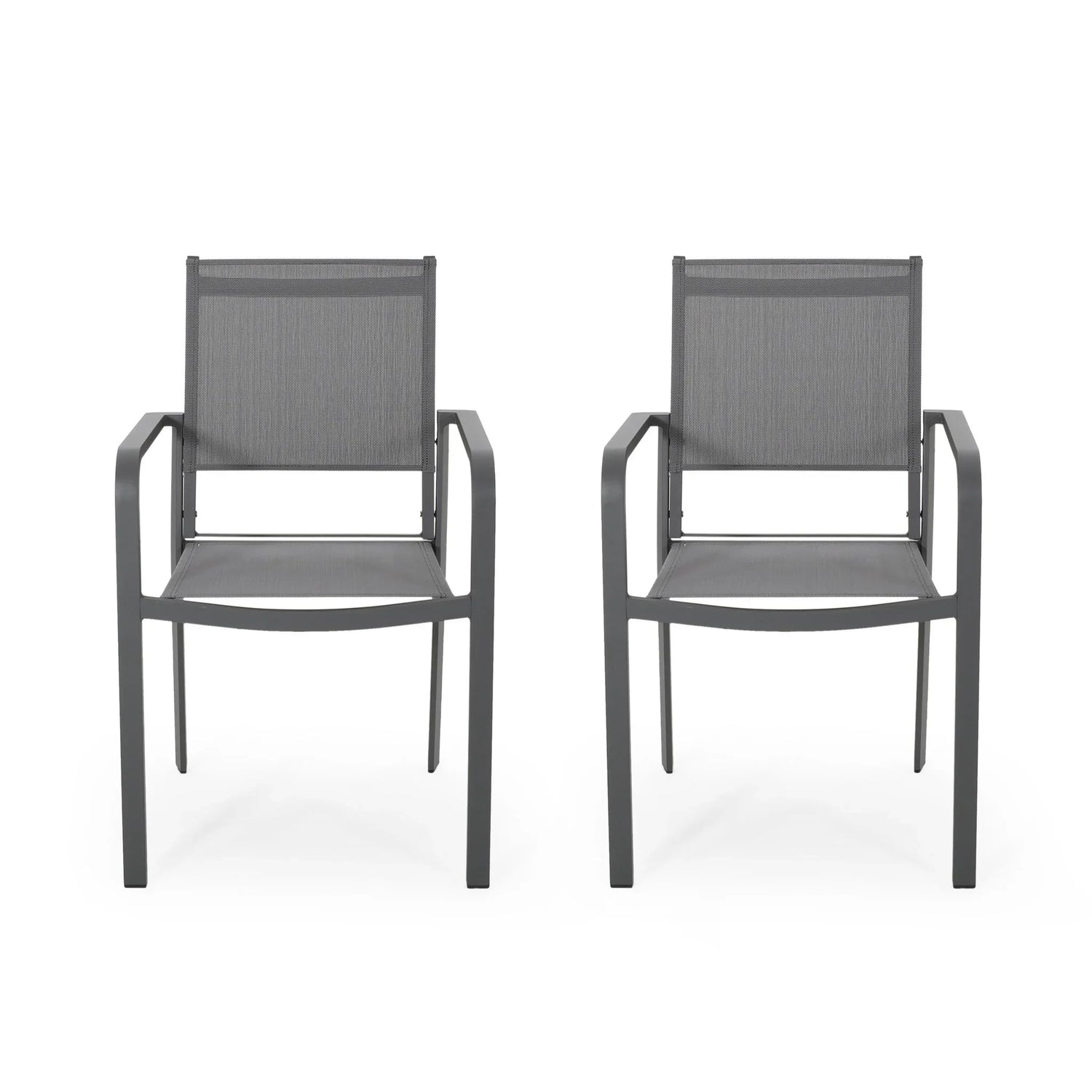 Waterfal - Outdoor Aluminum Dining Chair With Mesh Seat (Set of 2) - Dark Gray