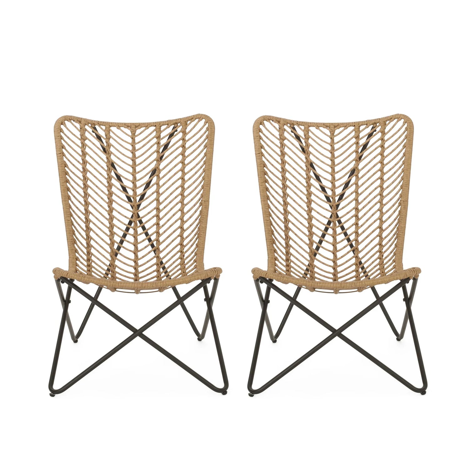 Wicker Chair With Geometric Cross Base, (Set of 2) - Light Brown